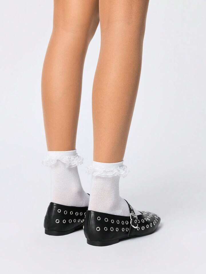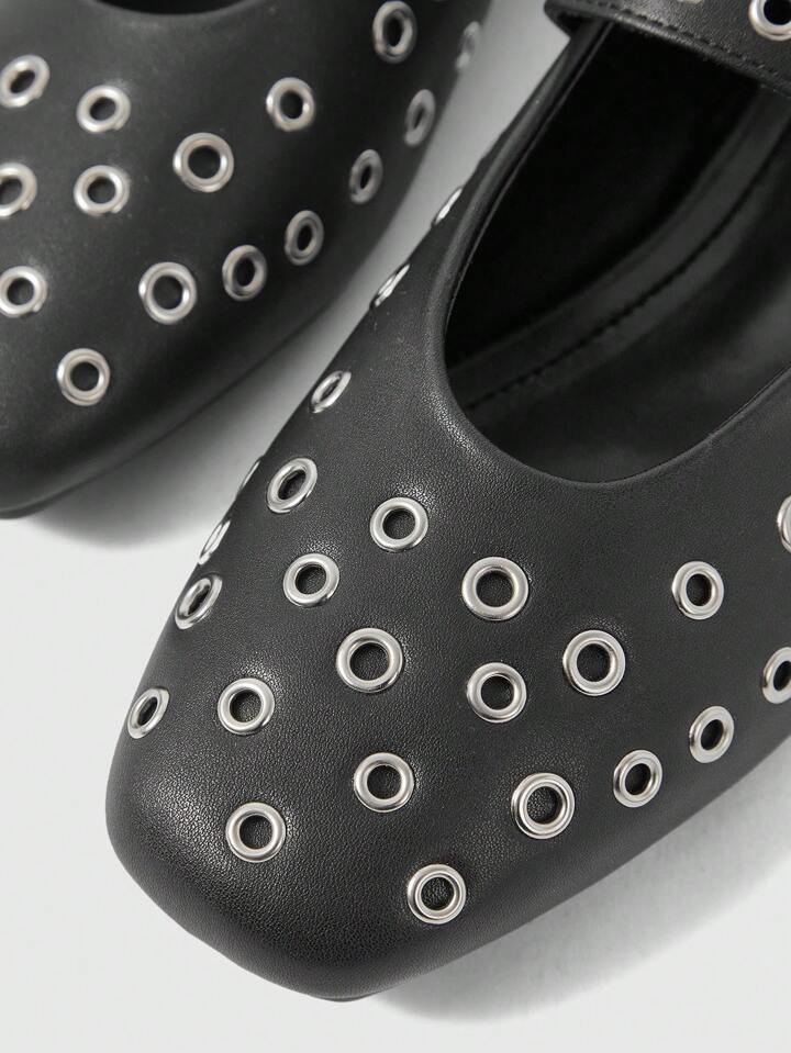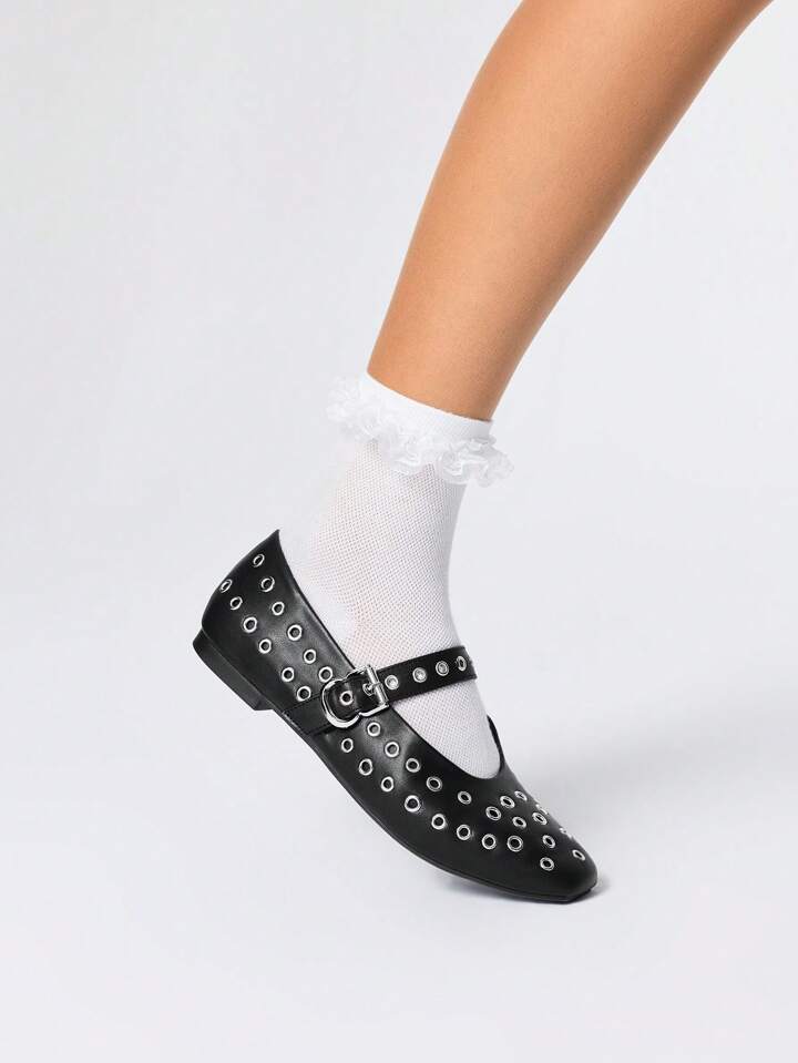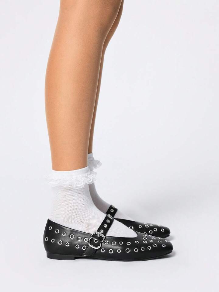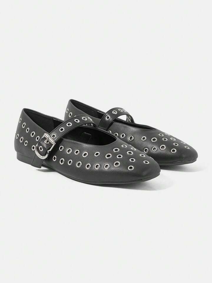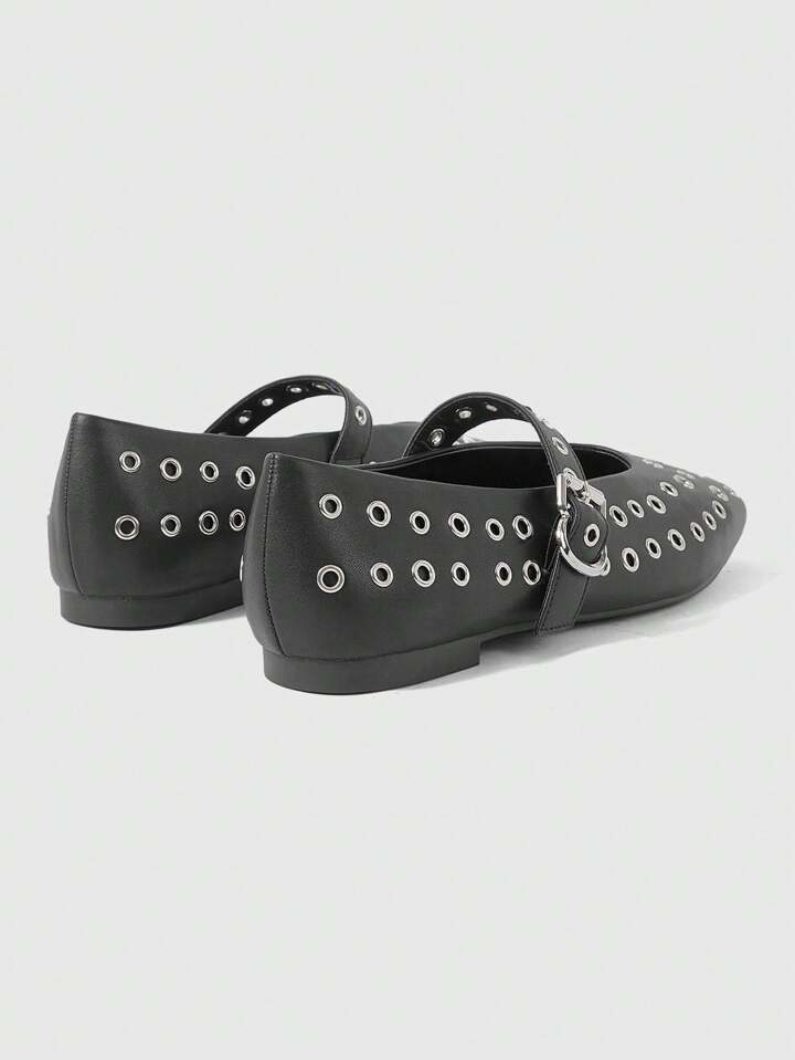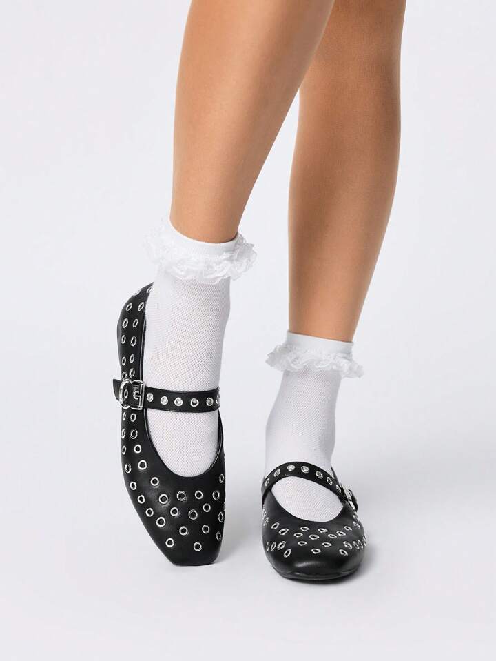 Goth Ballerine retrò in pelle spalmata rossa, comoda e casual, con cinturini incrociati e punta quadrata