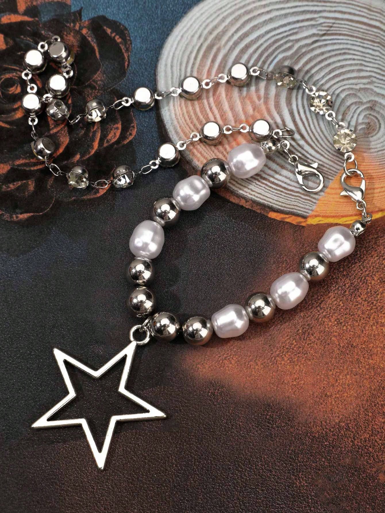 Goth Collana con ciondolo a forma di stella traforata, design personalizzato e alla moda, catena in acciaio al titanio con perle, regalo elegante per le donne