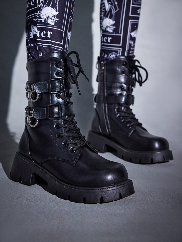 Goth Anello & con borchie con zip laterale lacci sul davanti Stivali combat