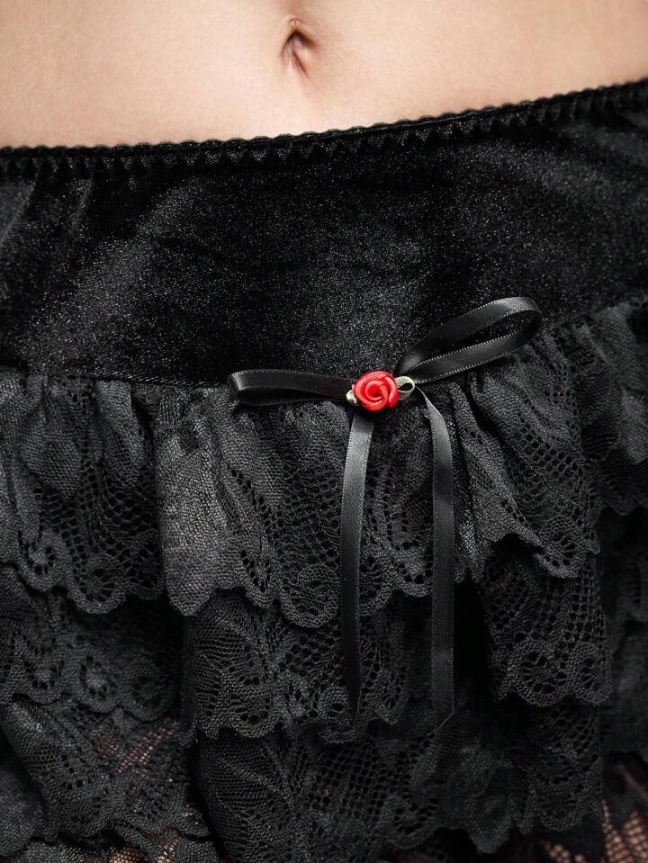 Pantaloncini goth romantici in velluto con balze e fiocco