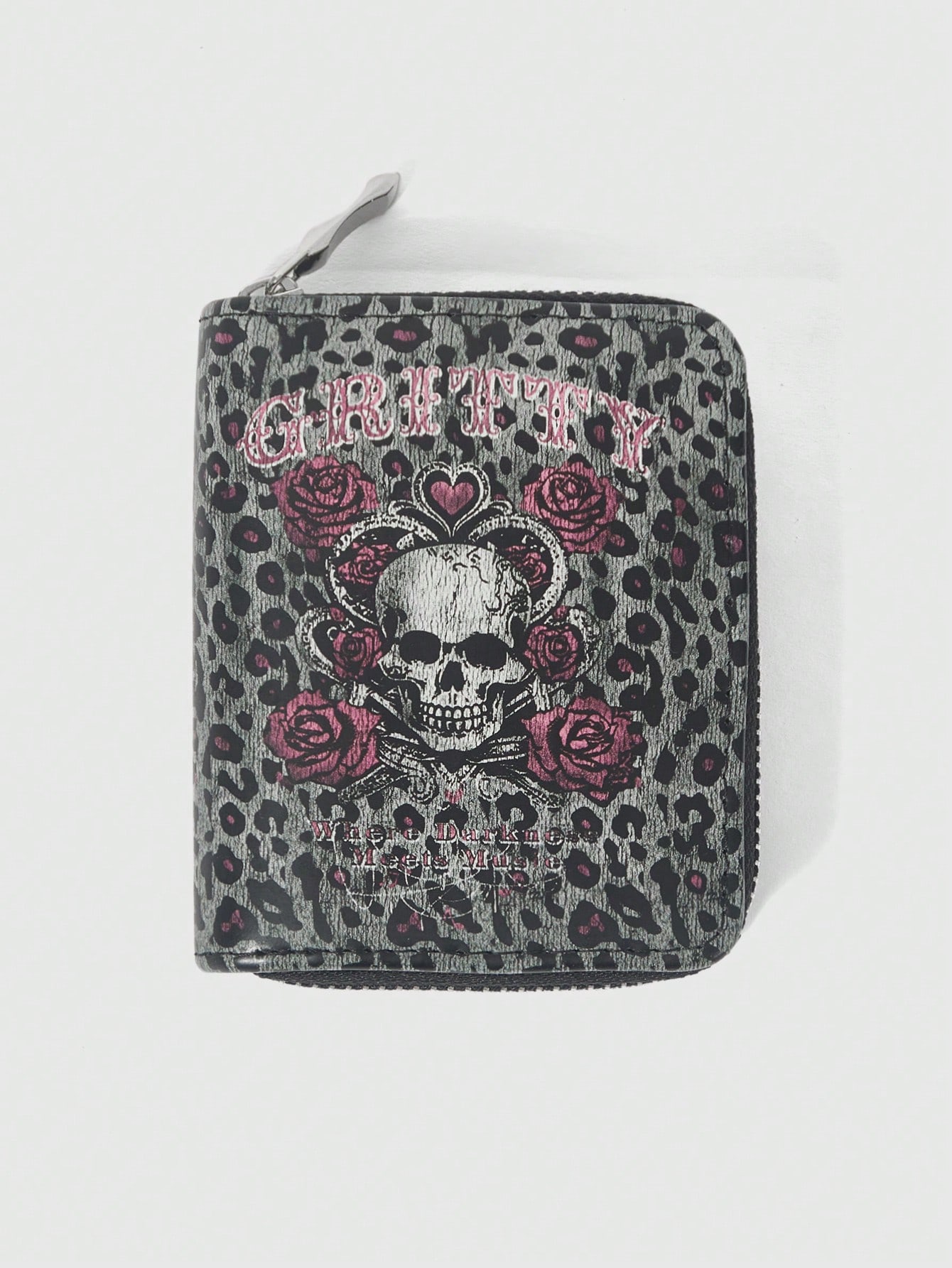 Goth Portafoglio compatto con motivo a teschio e stampa leopardata, portafoglio multifunzionale e creativo con porta carte