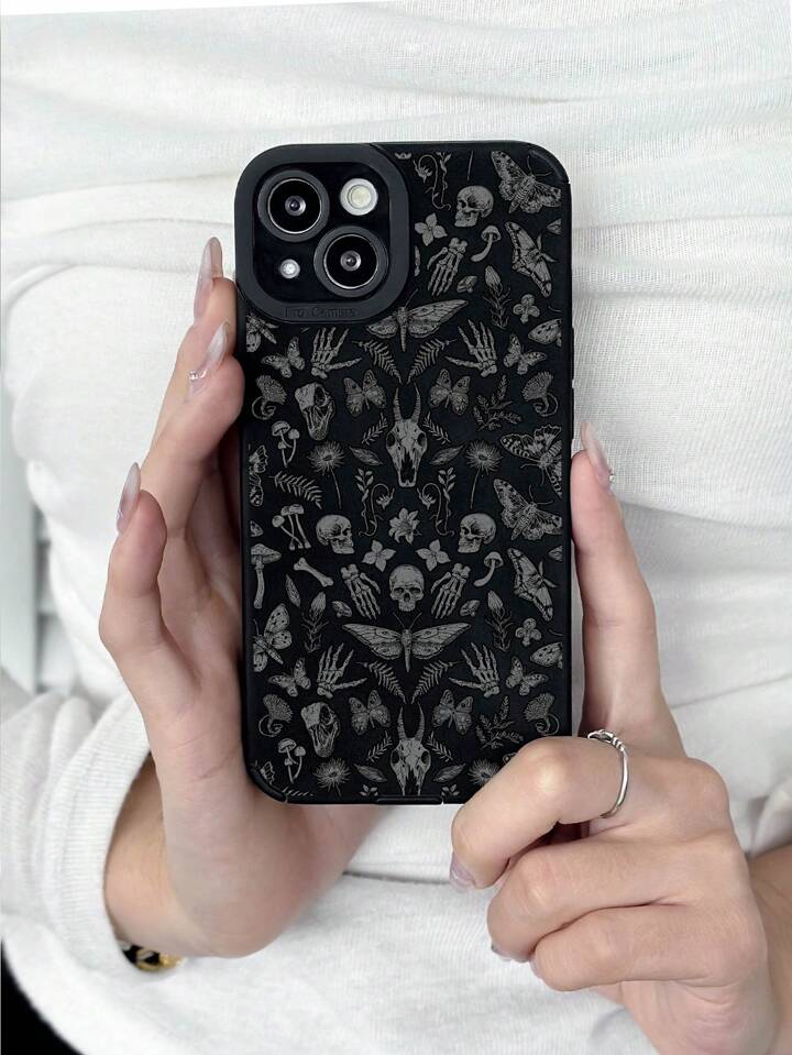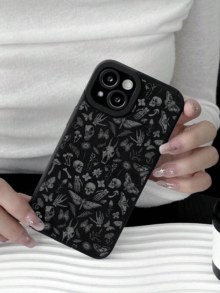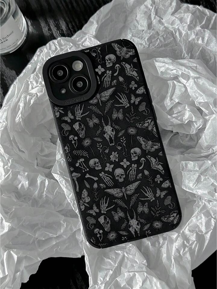 Goth Custodia per telefono con stampa grafica di scheletro e farfalla, morbida, compatibile con , per Ognissanti