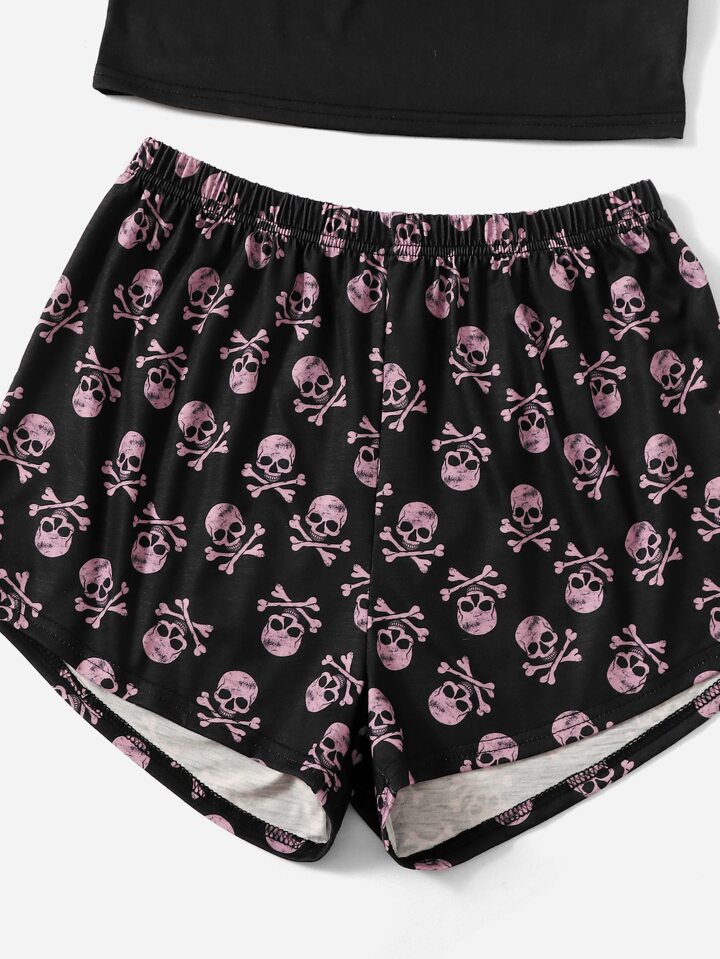 Goth Set pigiama con stampa scheletri ringer