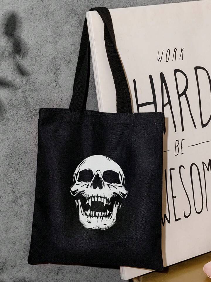 Goth Borsa shopping di tela teschio bifacciale stampata singolo