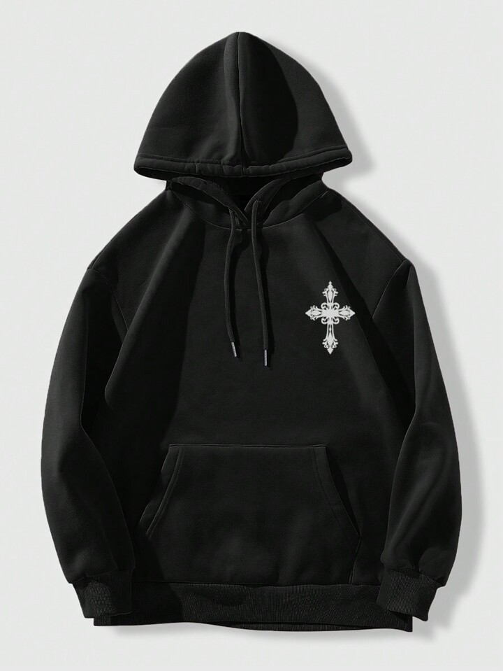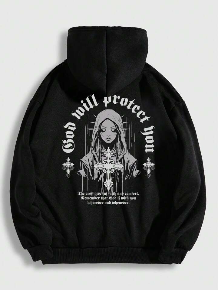 Goth Felpa con cappuccio slogan e figura con tasca a marsupio con coulisse