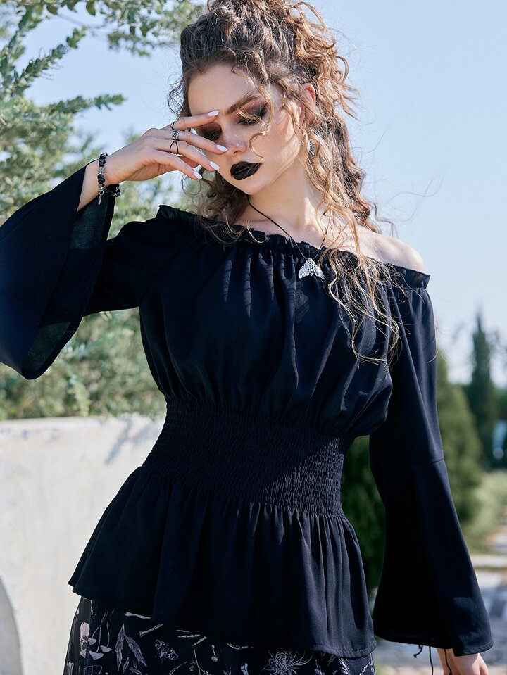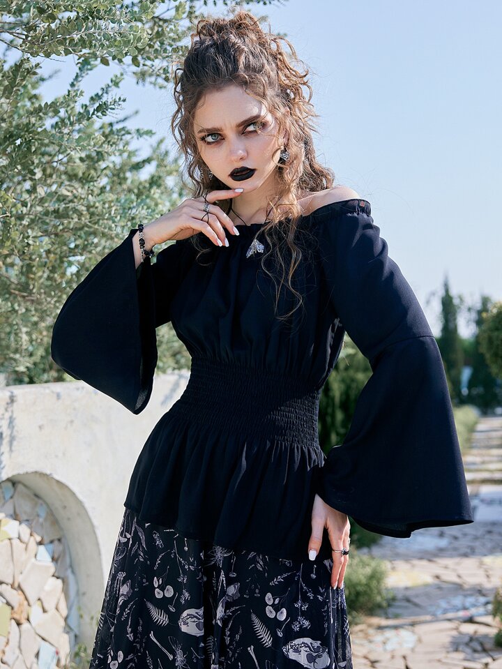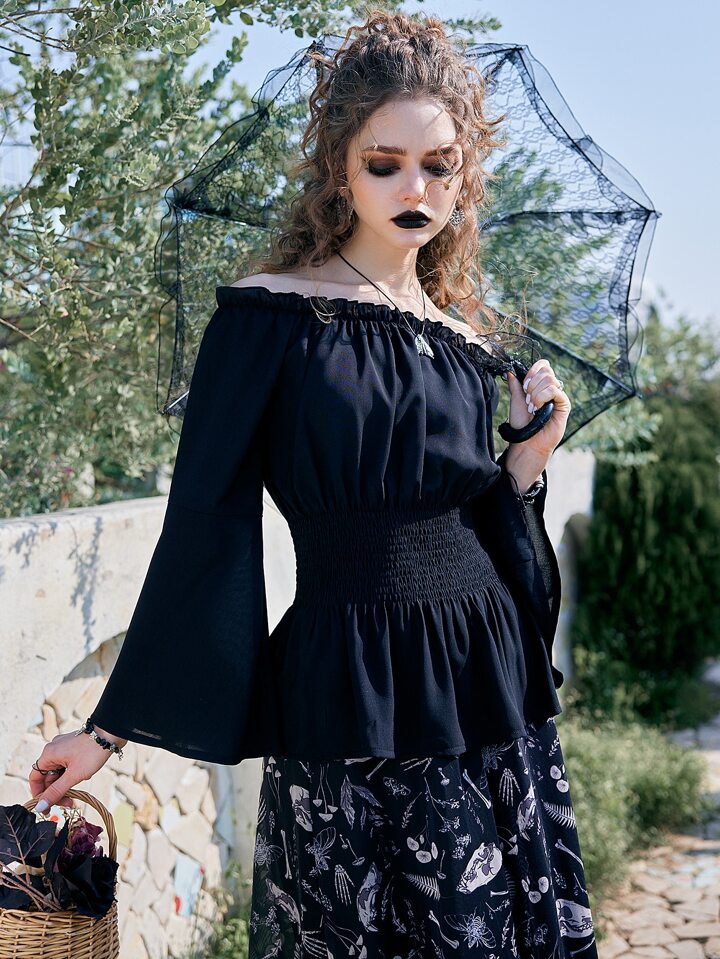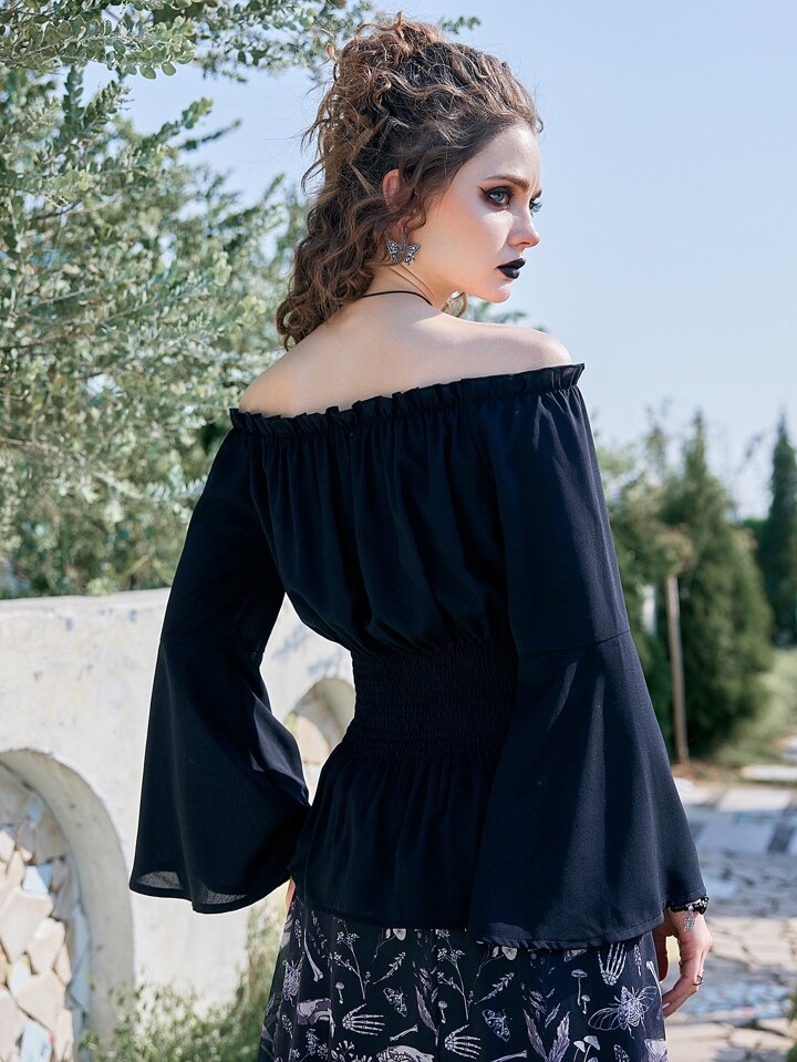 Goth Camicetta babydoll monocolore con volant