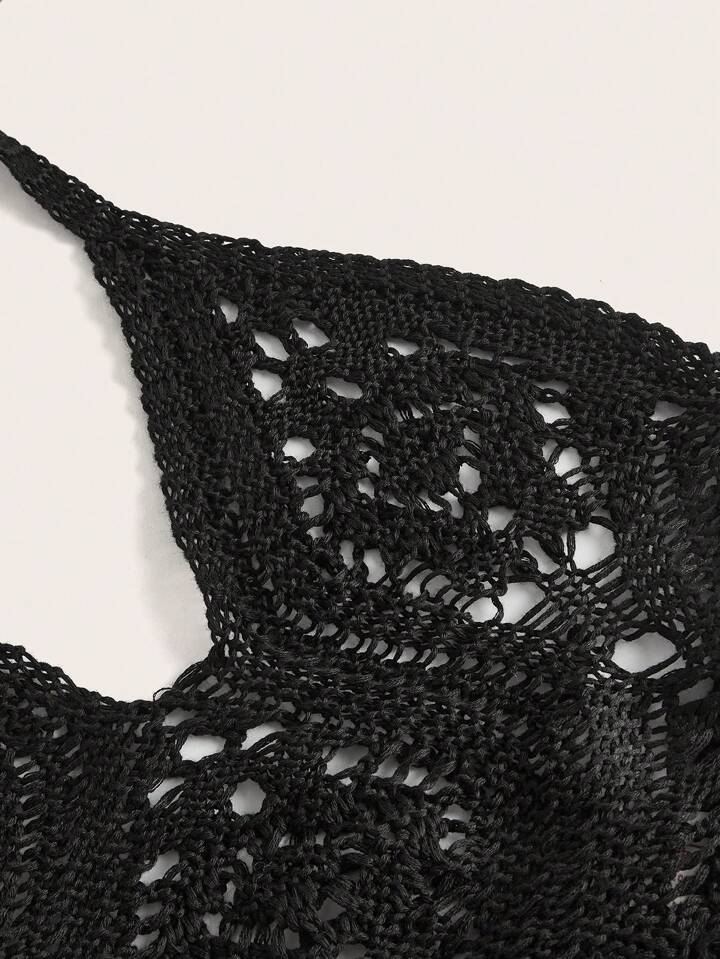 Goth Top in maglia monocolore scavato halter