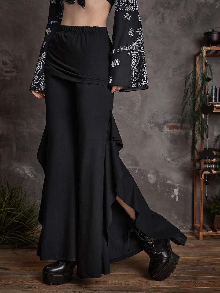 Goth Pantaloni svasati monocolore con bordo a volant