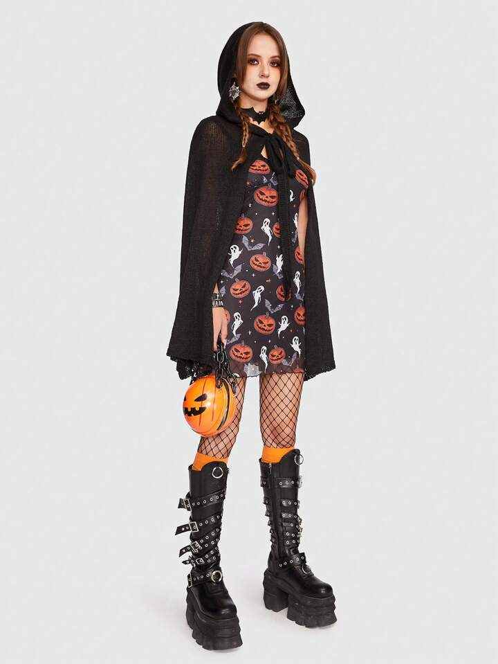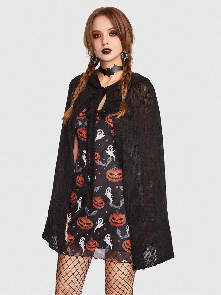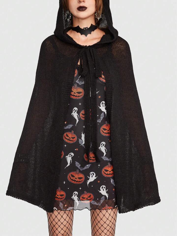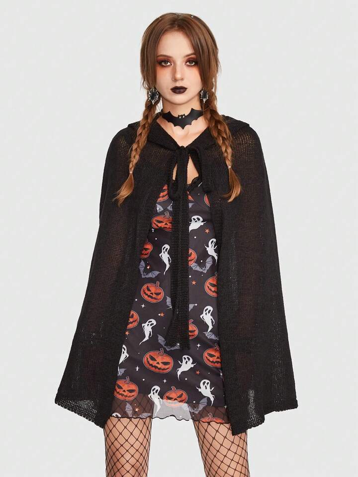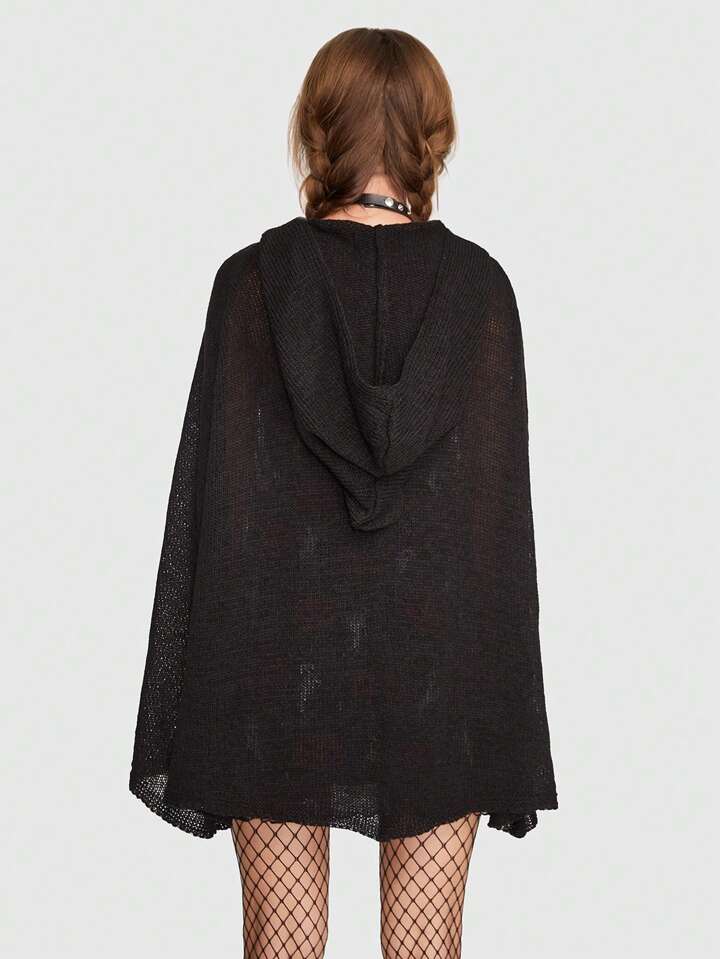 Goth Cardigan a mantello monocolore con nodo frontale con cappuccio