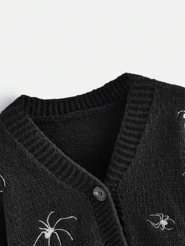 Goth Cardigan ragno con ricamo manica a lanterna