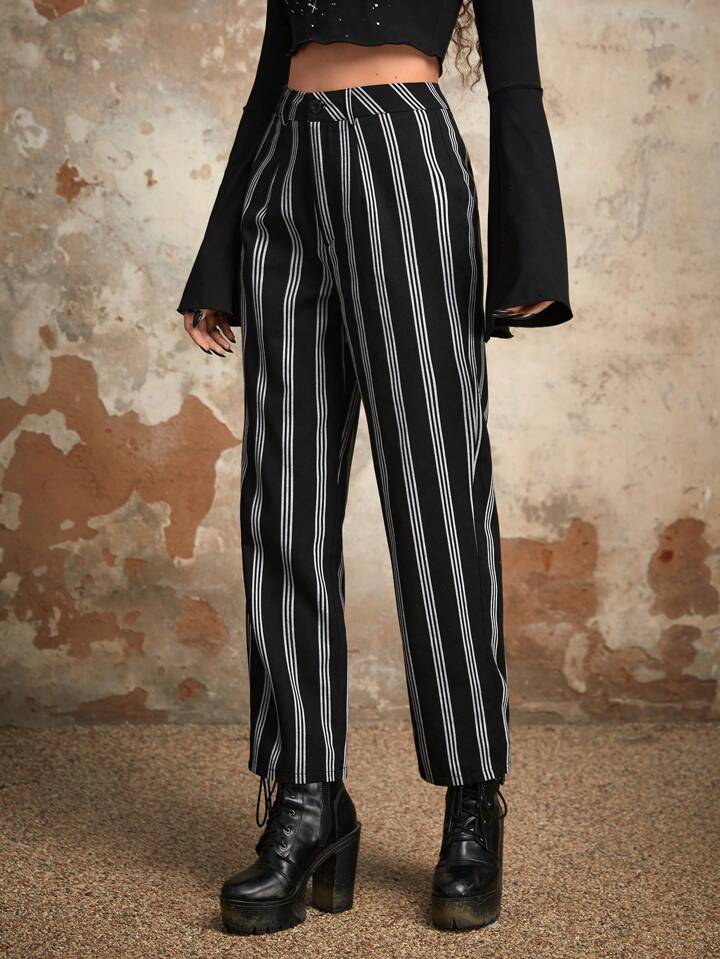 Goth Pantaloni a gamba dritta con stampa a righe, per la scuola