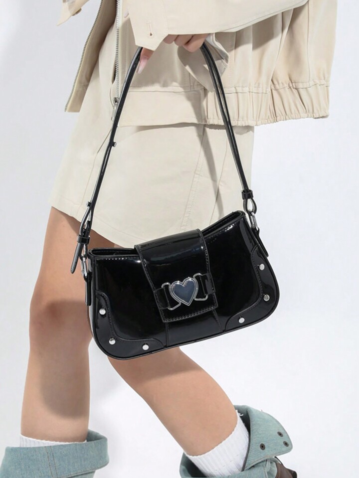 Goth Borsa a tracolla in pelle verniciata con borchie, in stile punk, borsa alla moda da donna