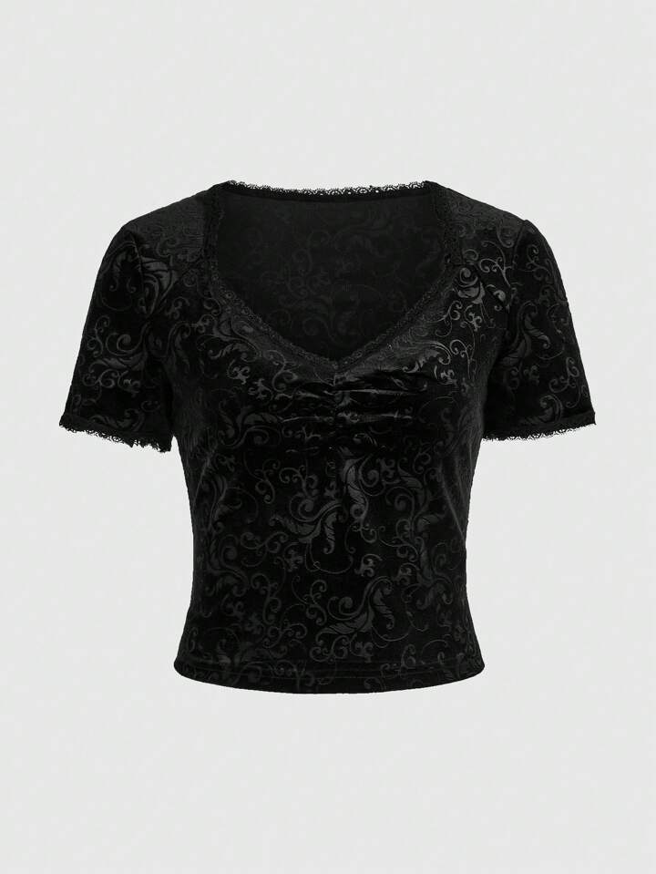 Goth Maglietta collo a cuore volant di velluto
