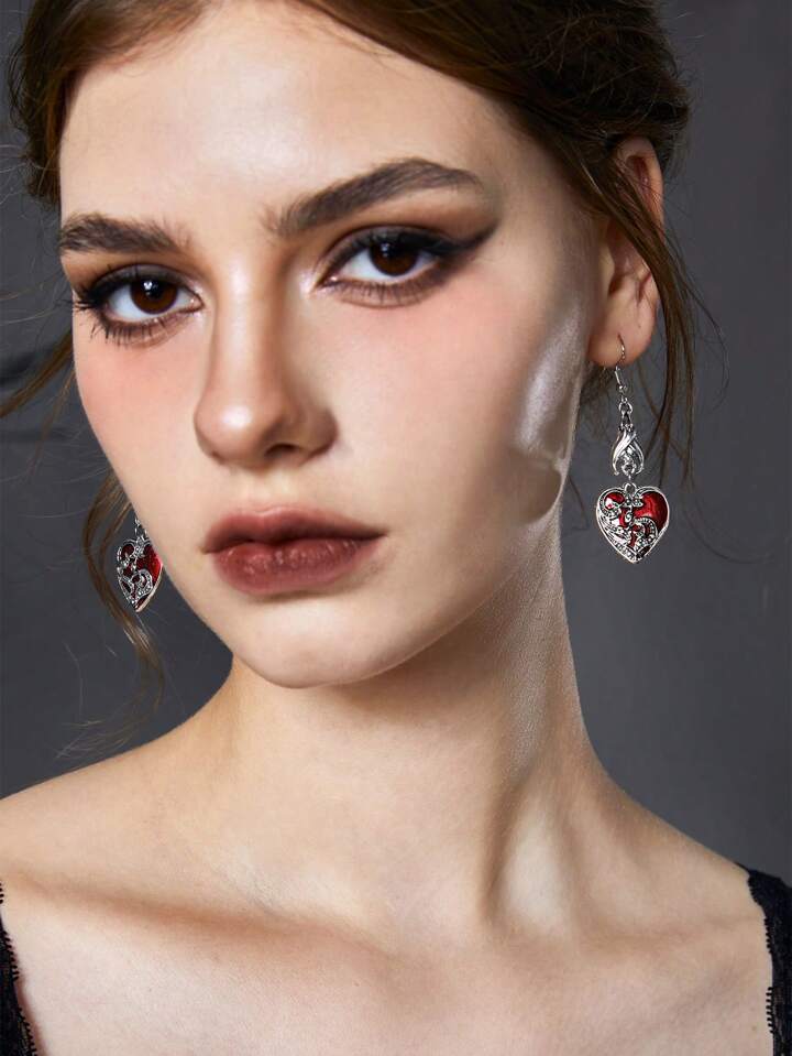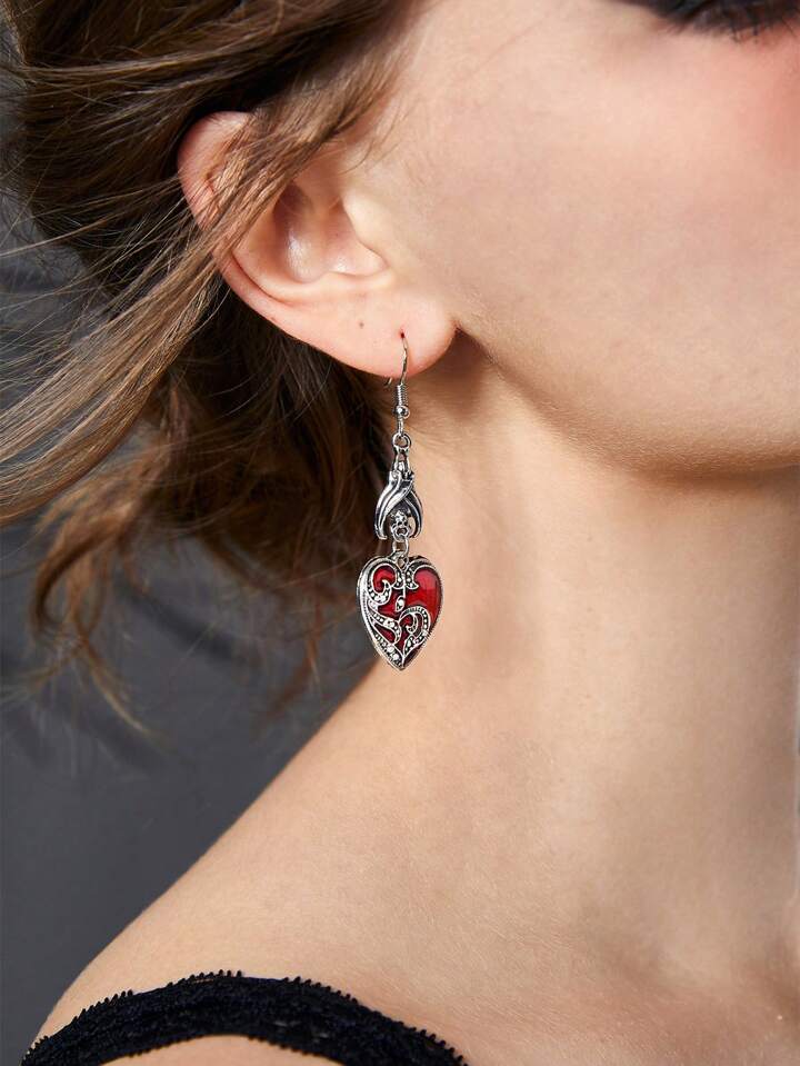 Goth Orecchini vintage Love a forma di cuore rosso per donne