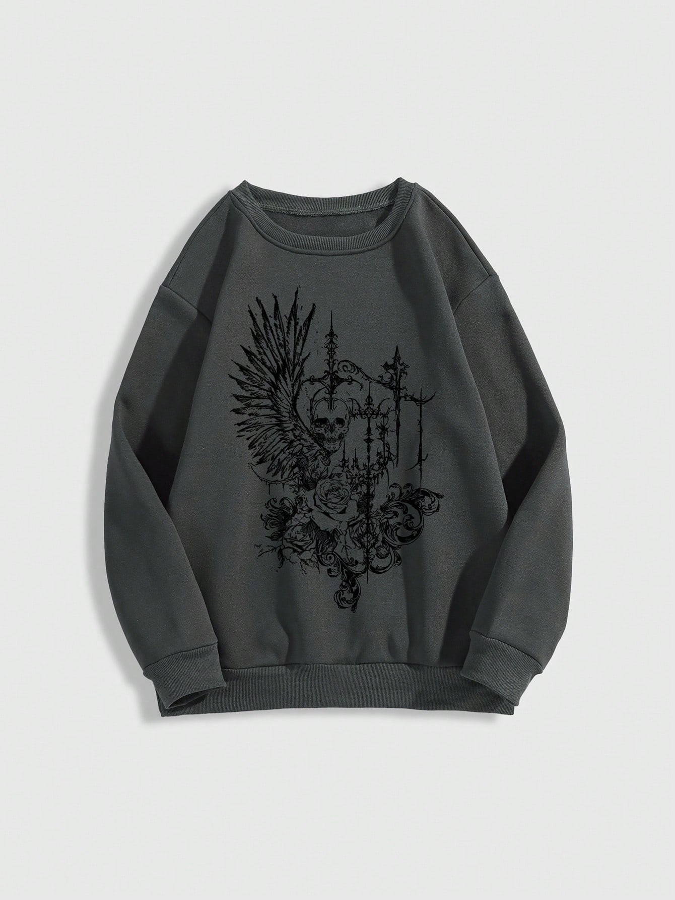 Goth Felpa con cappuccio in pile con stampa di teschio alato e croce rosa