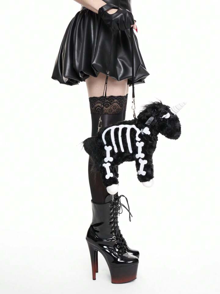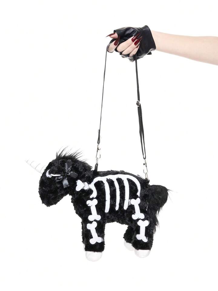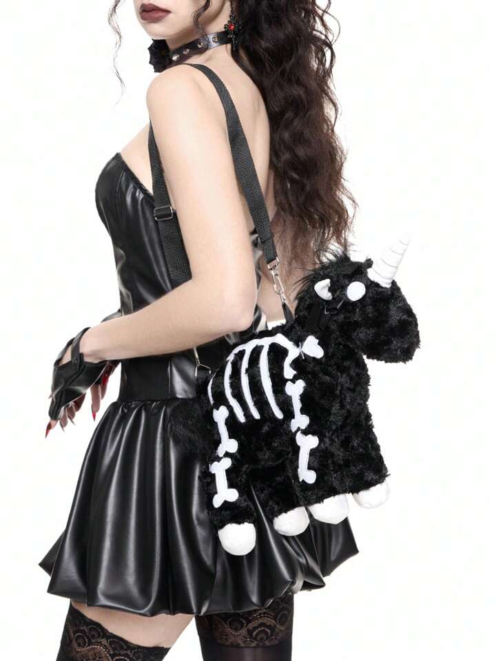 Goth Borsa a spalla da donna minimalista con motivo cartoni animati, custodia casual da usare quotidianamente