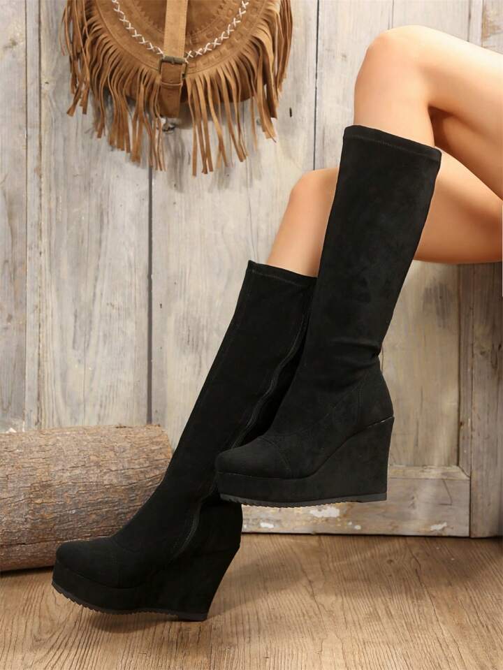 Goth Donna minimalista senza chiusure Stivali con zeppa, cool esterno Stivali di moda