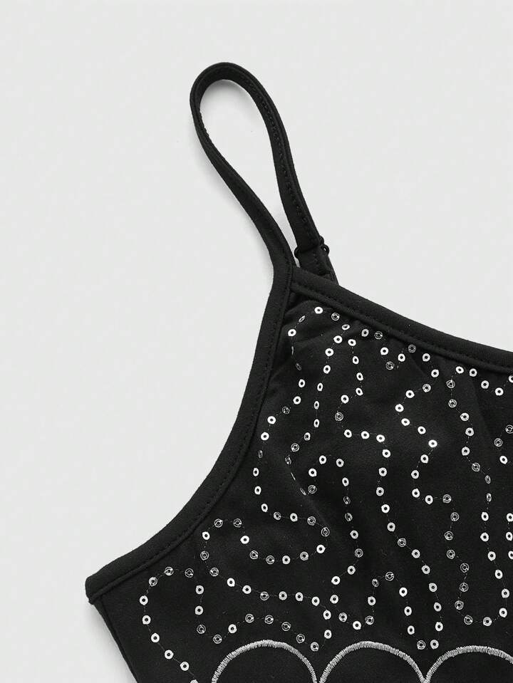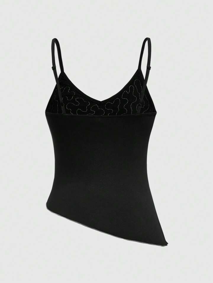 Goth Canotta da donna con spaghetti e orlo asimmetrico con motivo a farfalla glitterato
