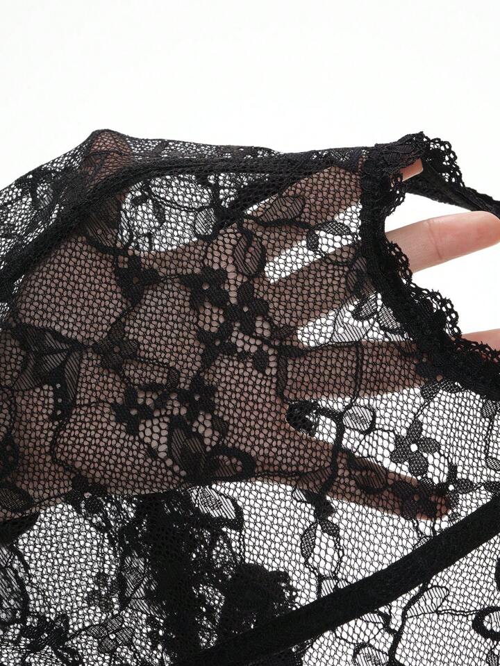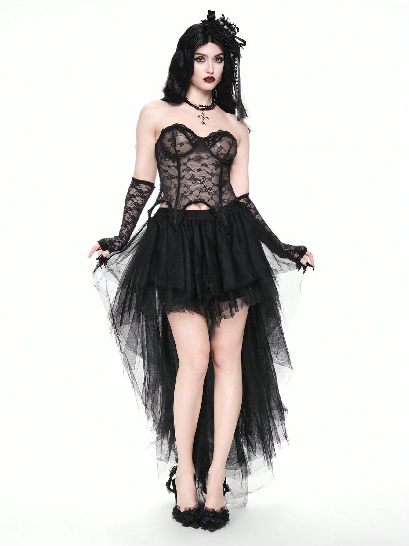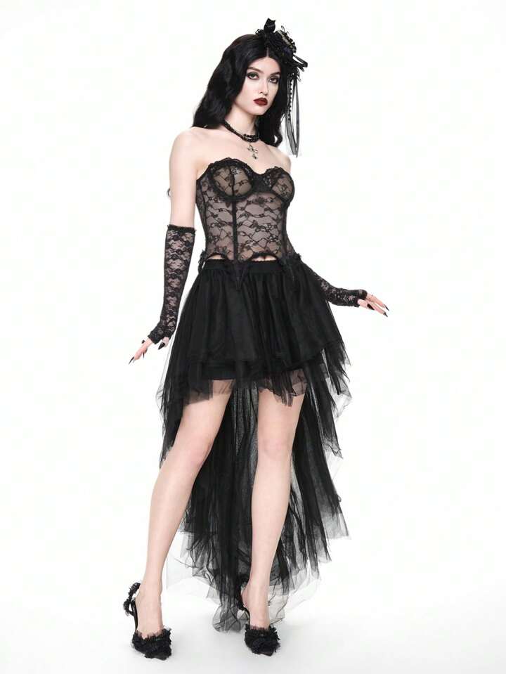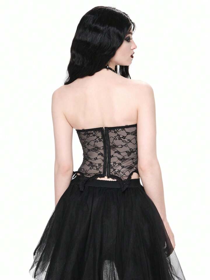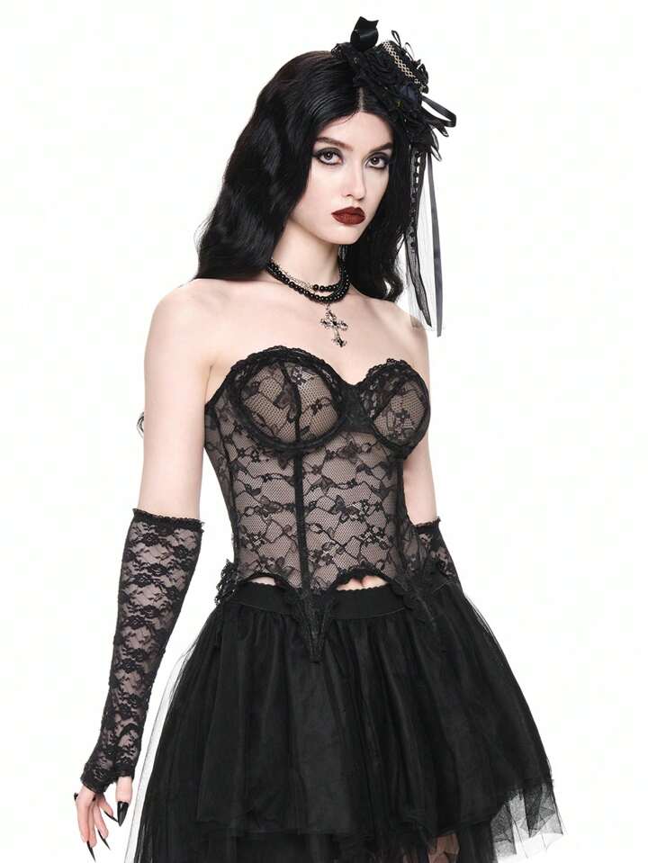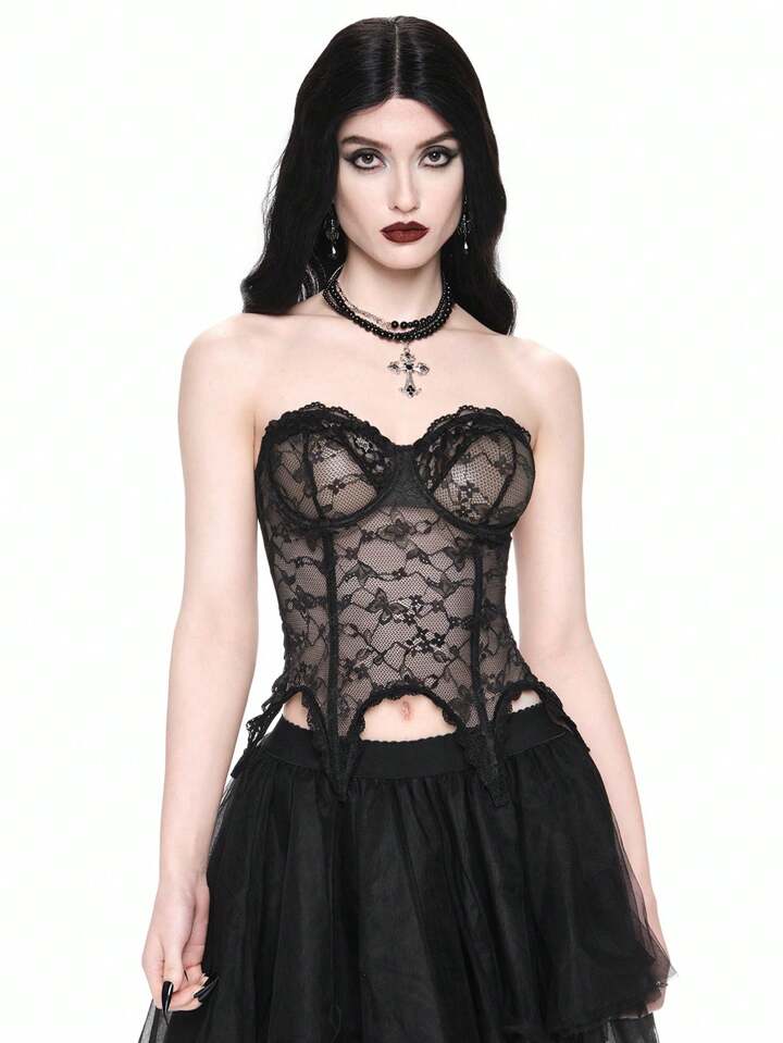 Goth Reggiseno a fascia in pizzo trasparente sexy da donna, può essere indossato come capo esterno