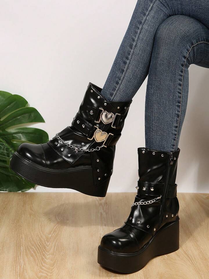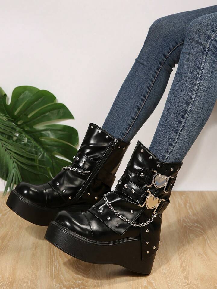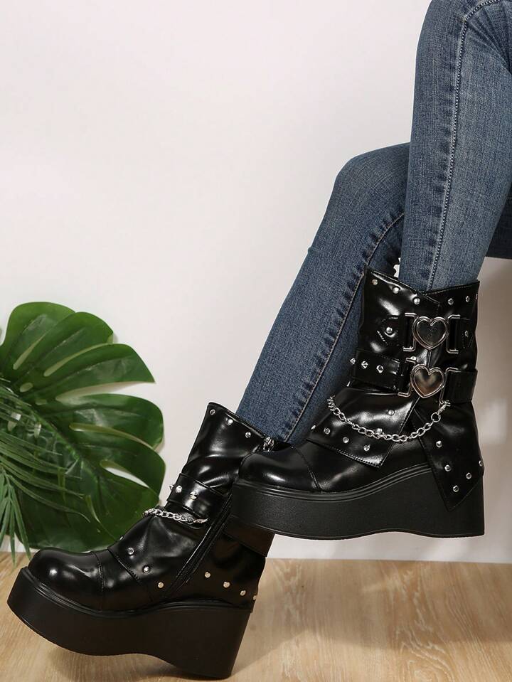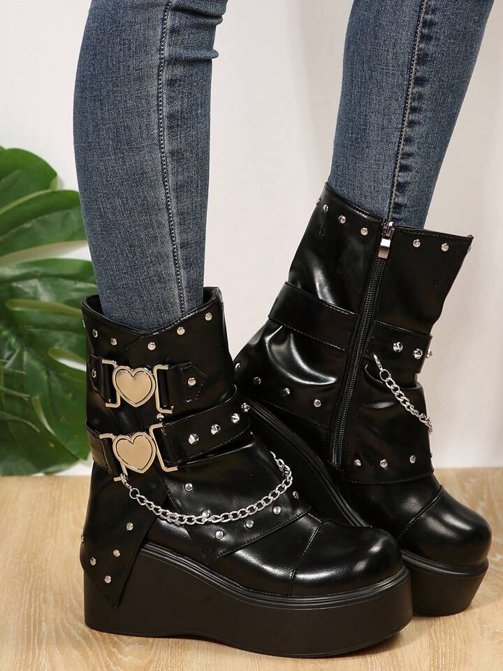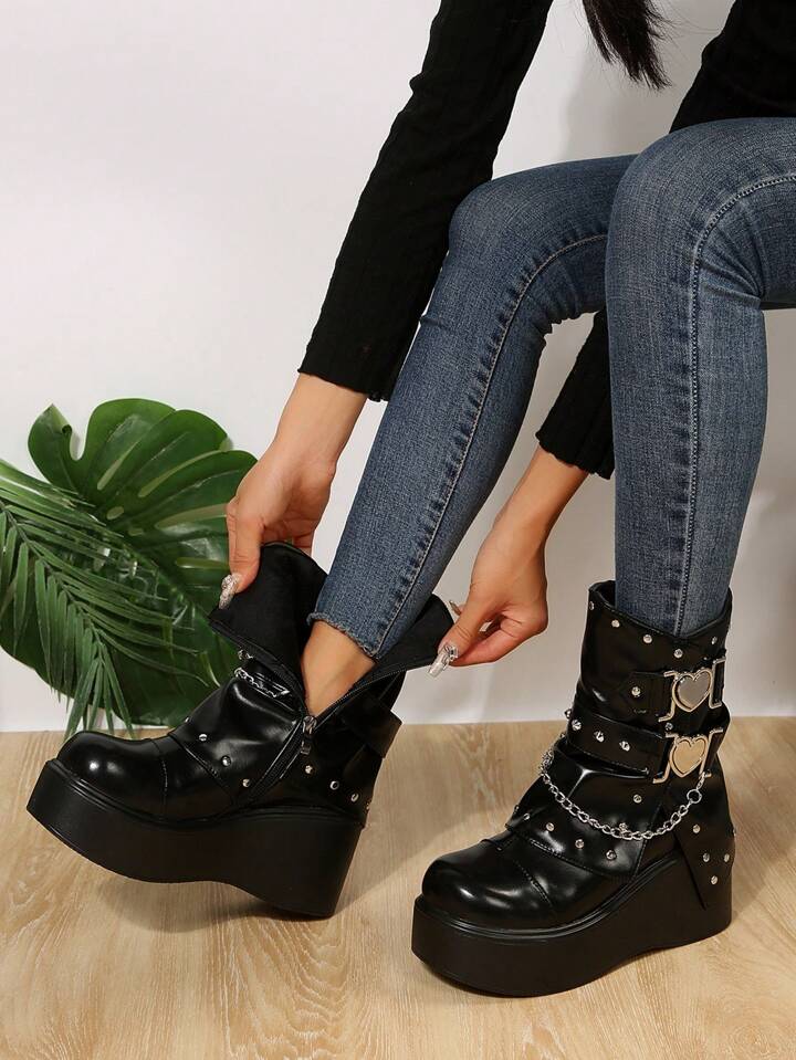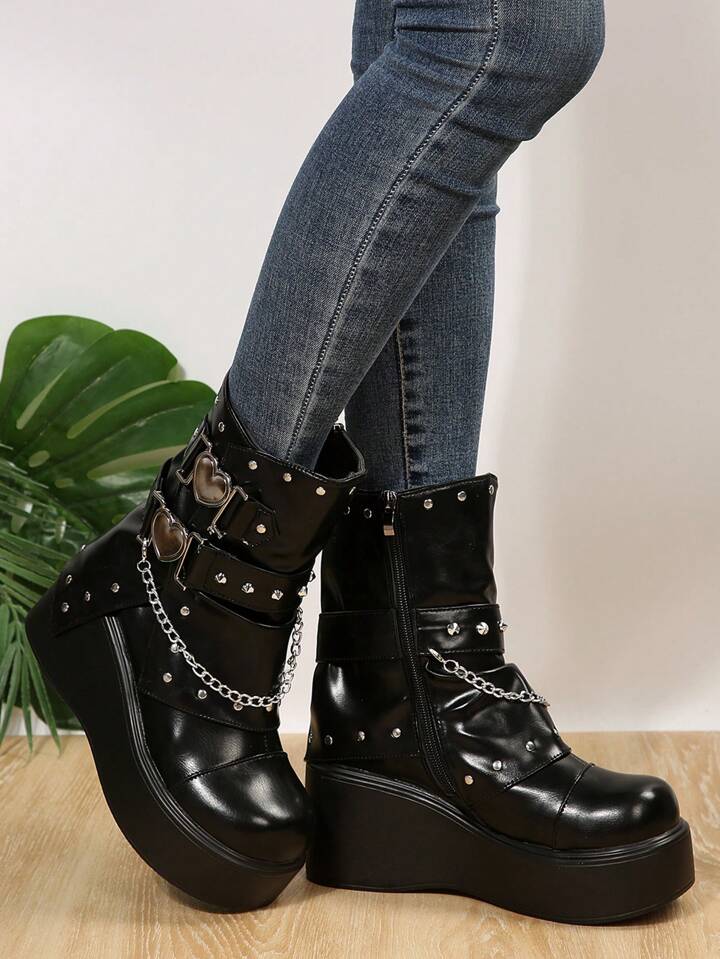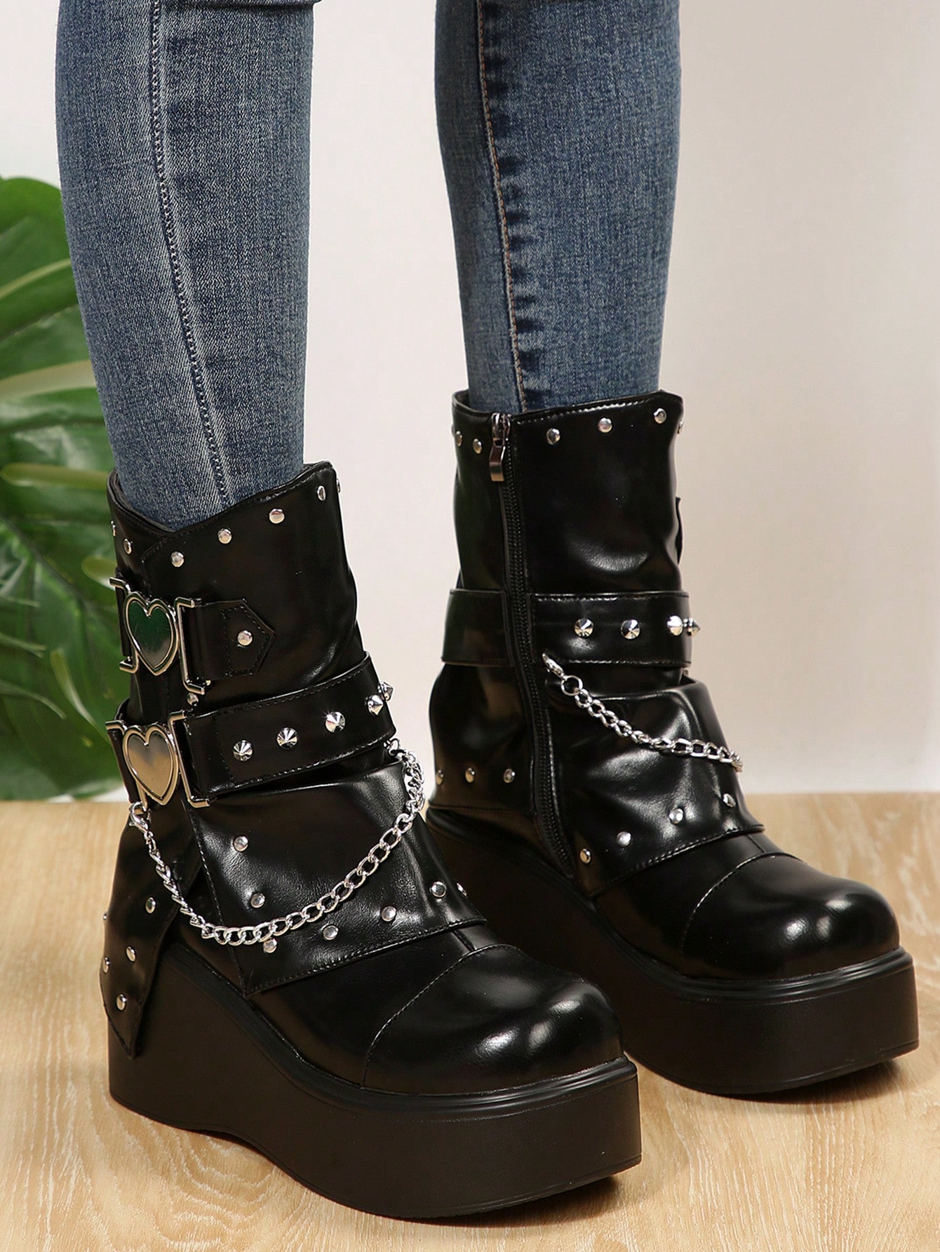 Goth Donna con borchie & con decorato a catena con zip laterale Stivali , punk esterno Stivali di moda