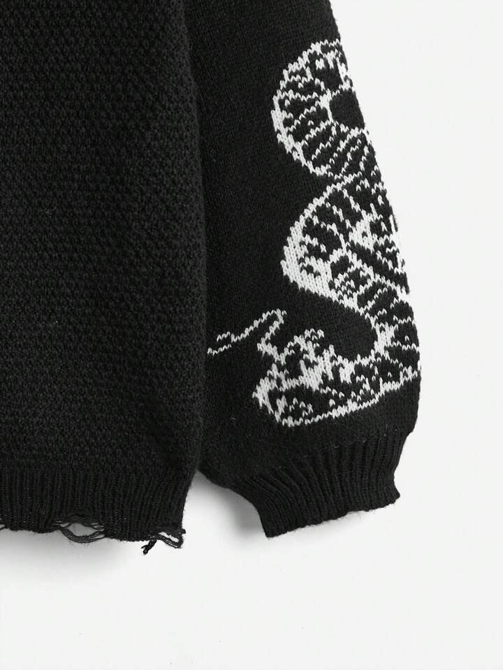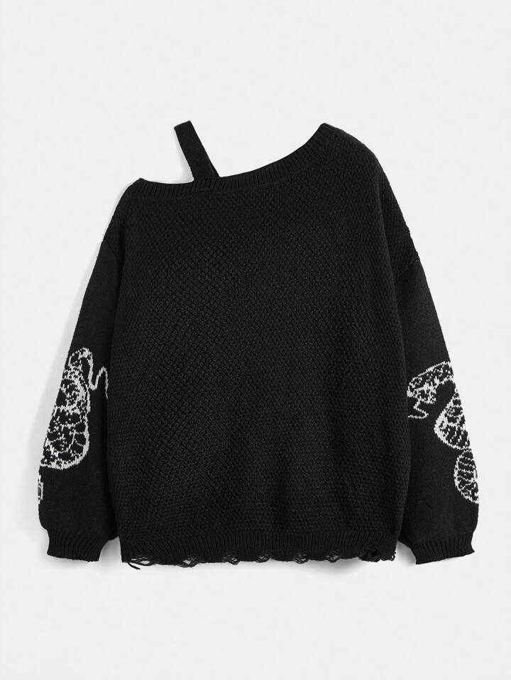 Goth Maglione con collo asimmetrico e motivo a serpente per donne, adatto per la scuola