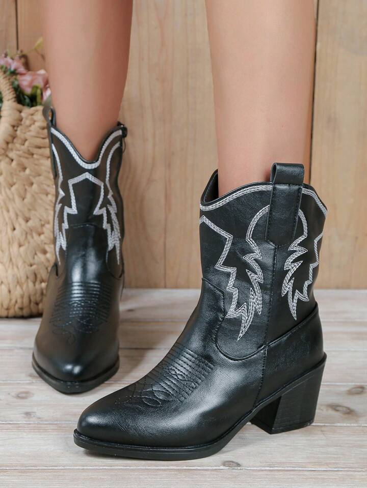 Goth Stivali da cowboy ricamati con metà polpaccio per donna
