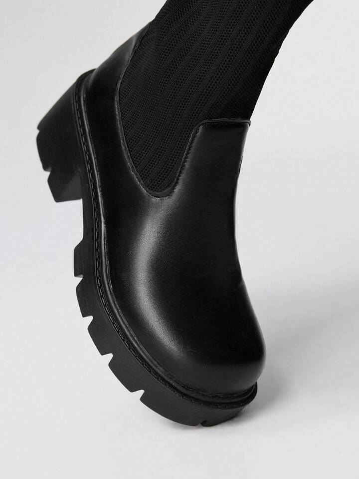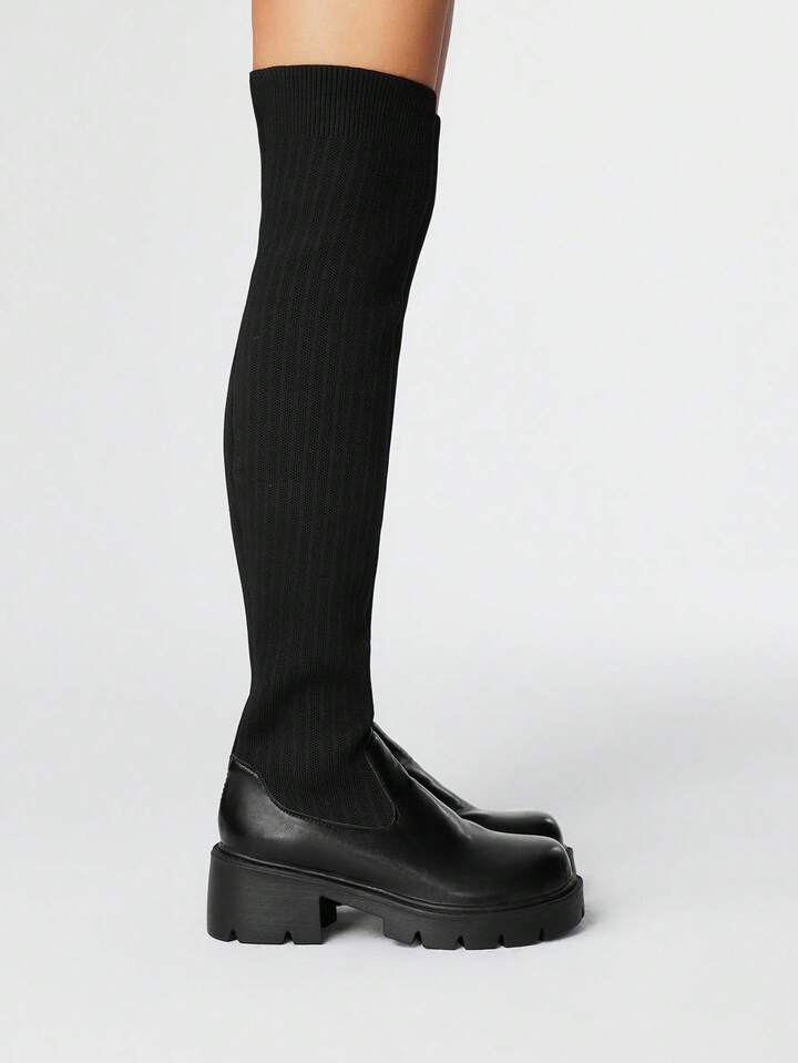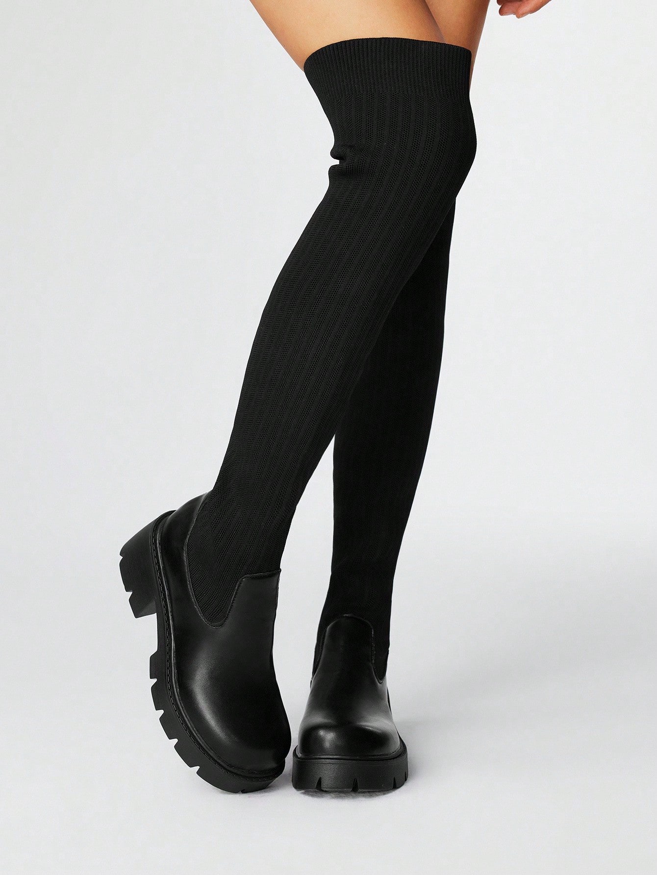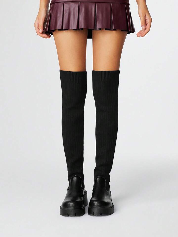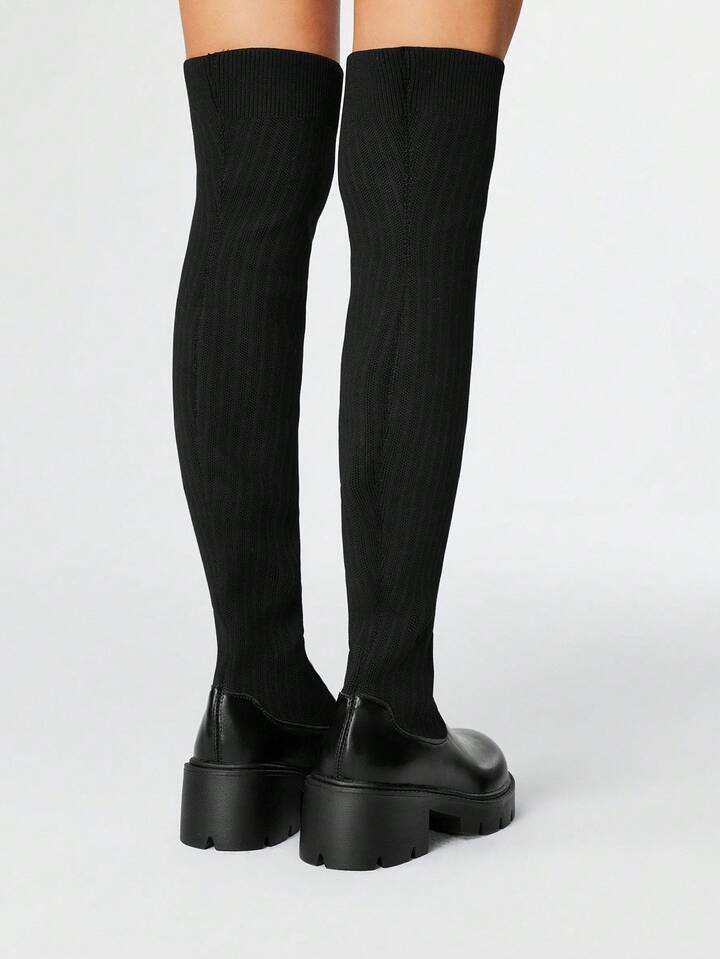 Goth Stivali alti sopra il ginocchio da donna alla moda, con punta tonda, tacco largo e comodi, stivali alti per l'autunno con laccio regolabile e cerniera laterale