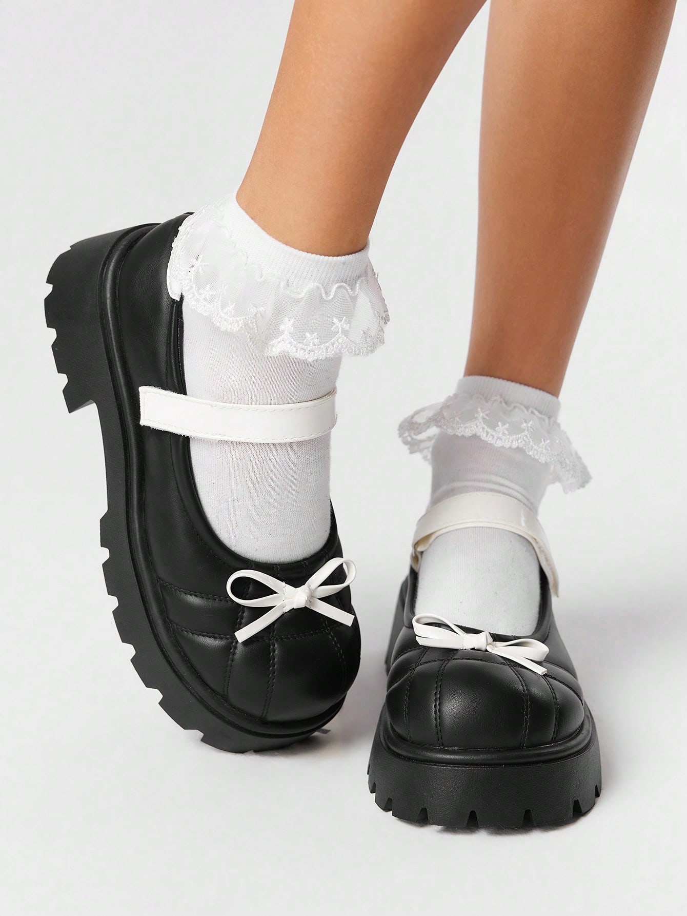 Goth Mocassini con zeppa e plateau da donna alla moda e versatili, con decorazione a fiocco
