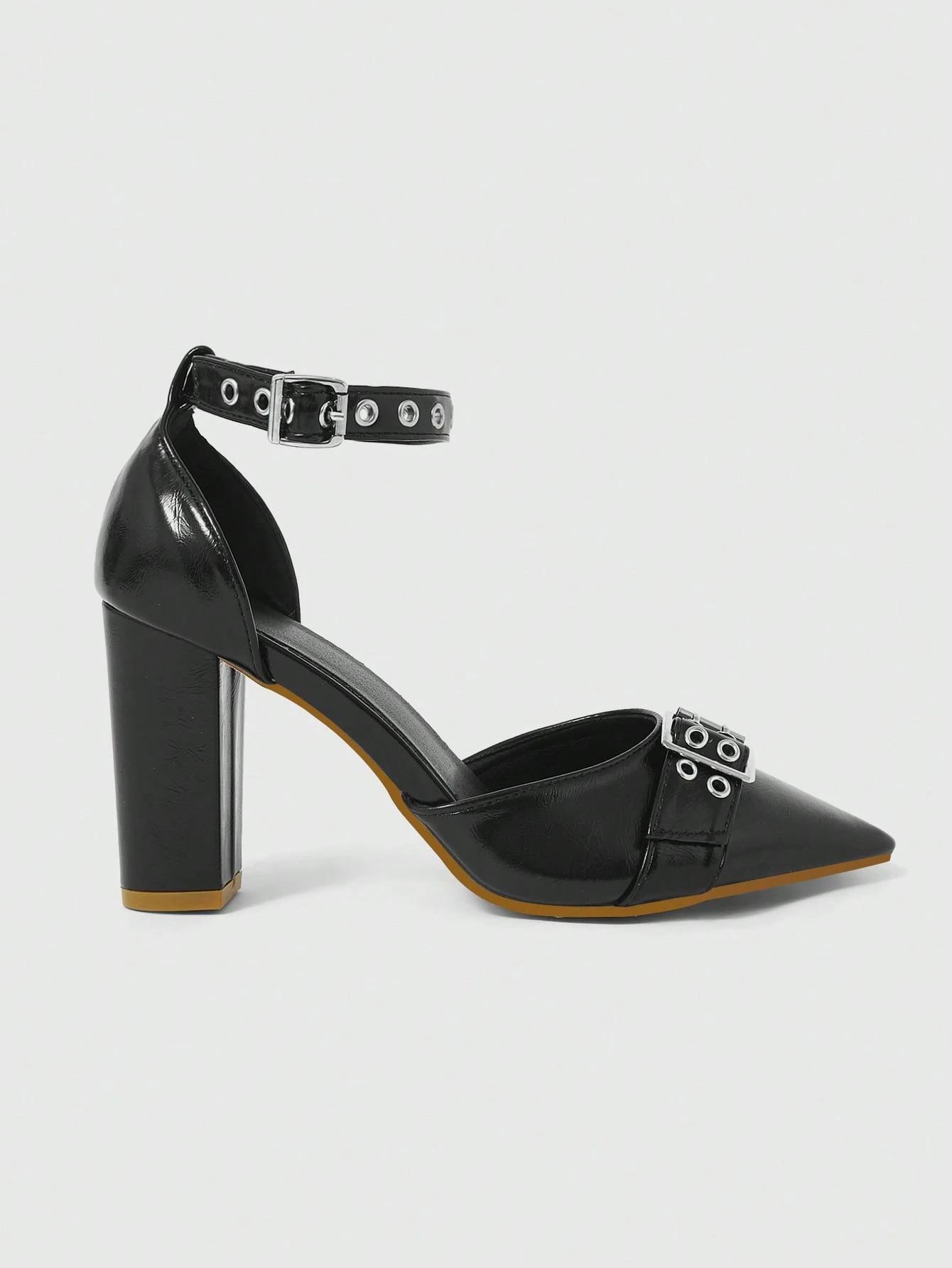 Goth Sandali donna stile punk con punta, fibbia, neri, da moto, ciabatte con tacco alto