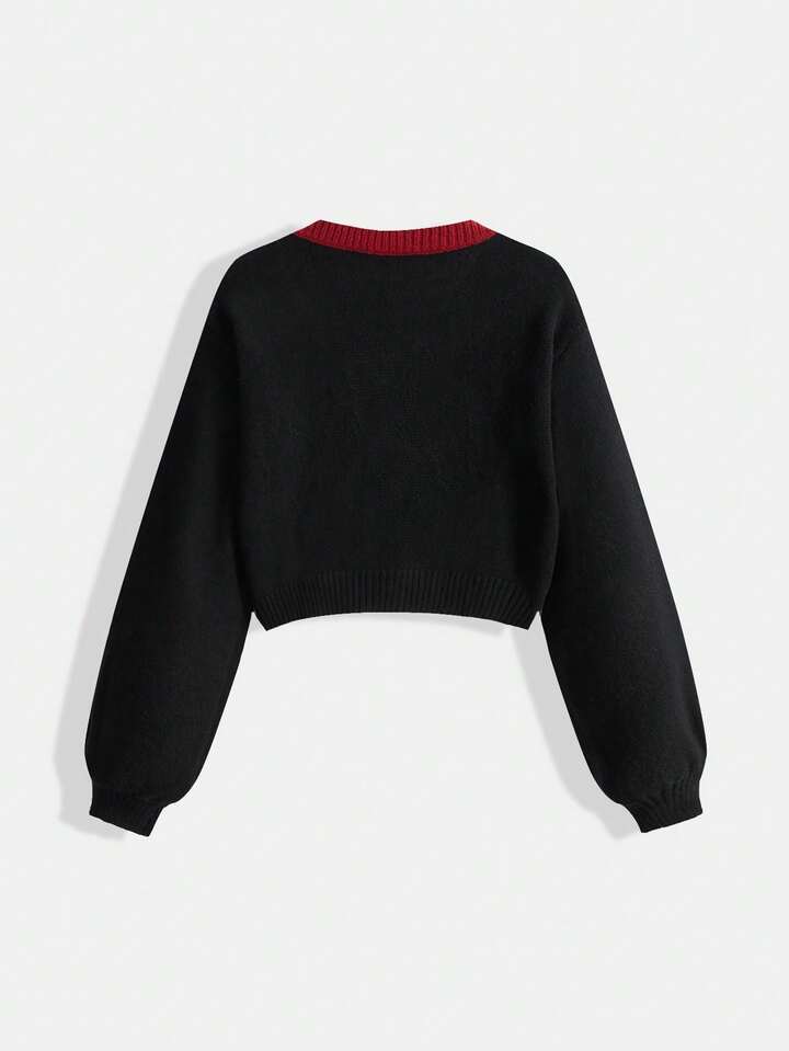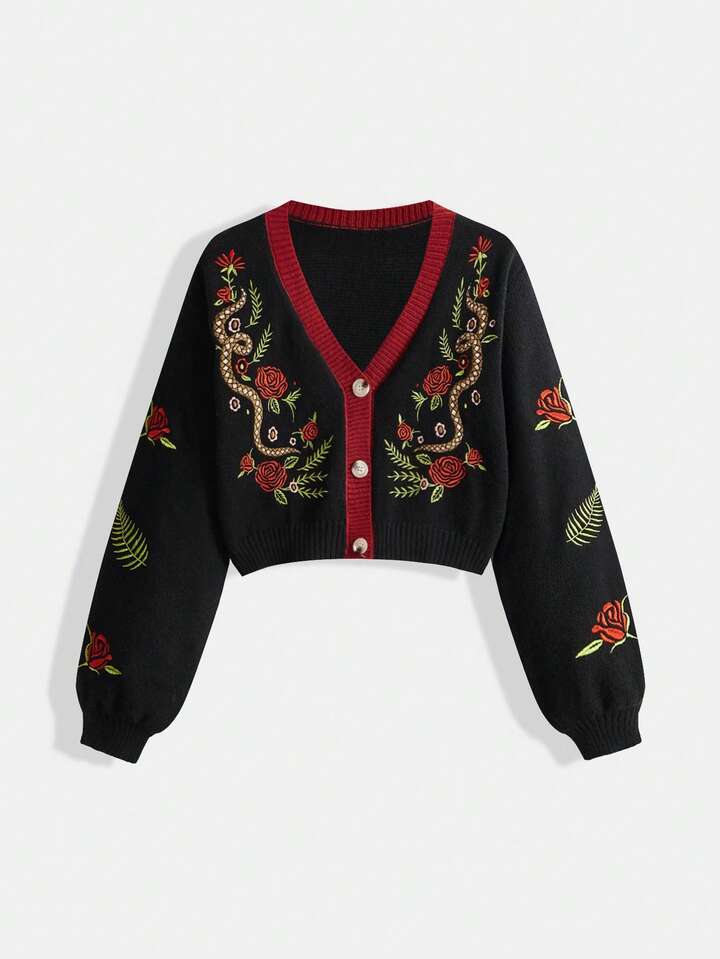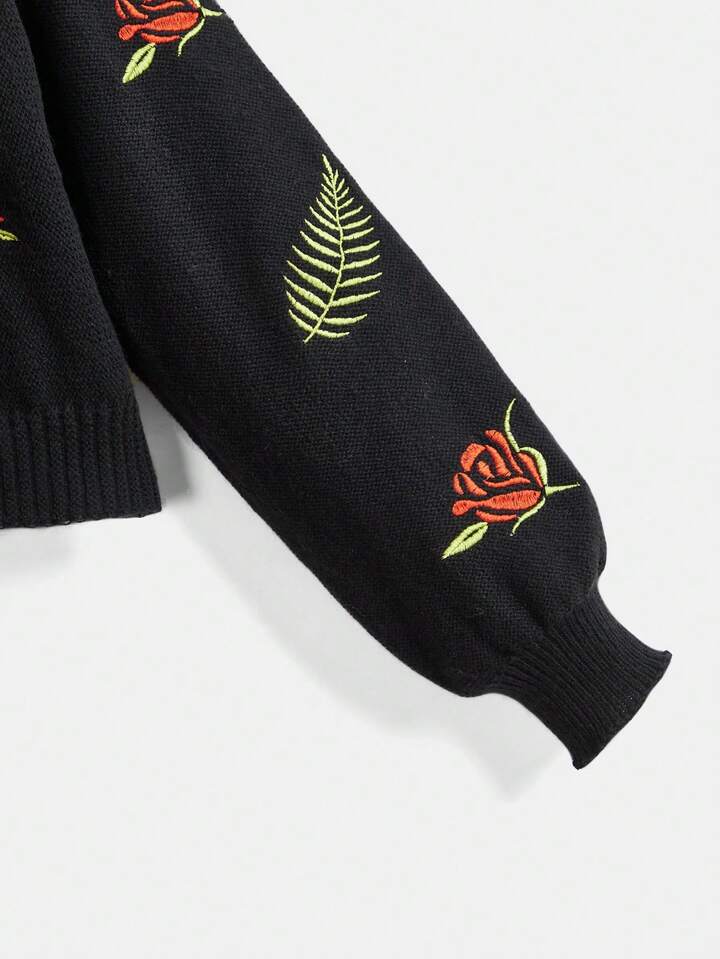 Goth Cardigan lavorato a maglia con ricamo a rose per donna