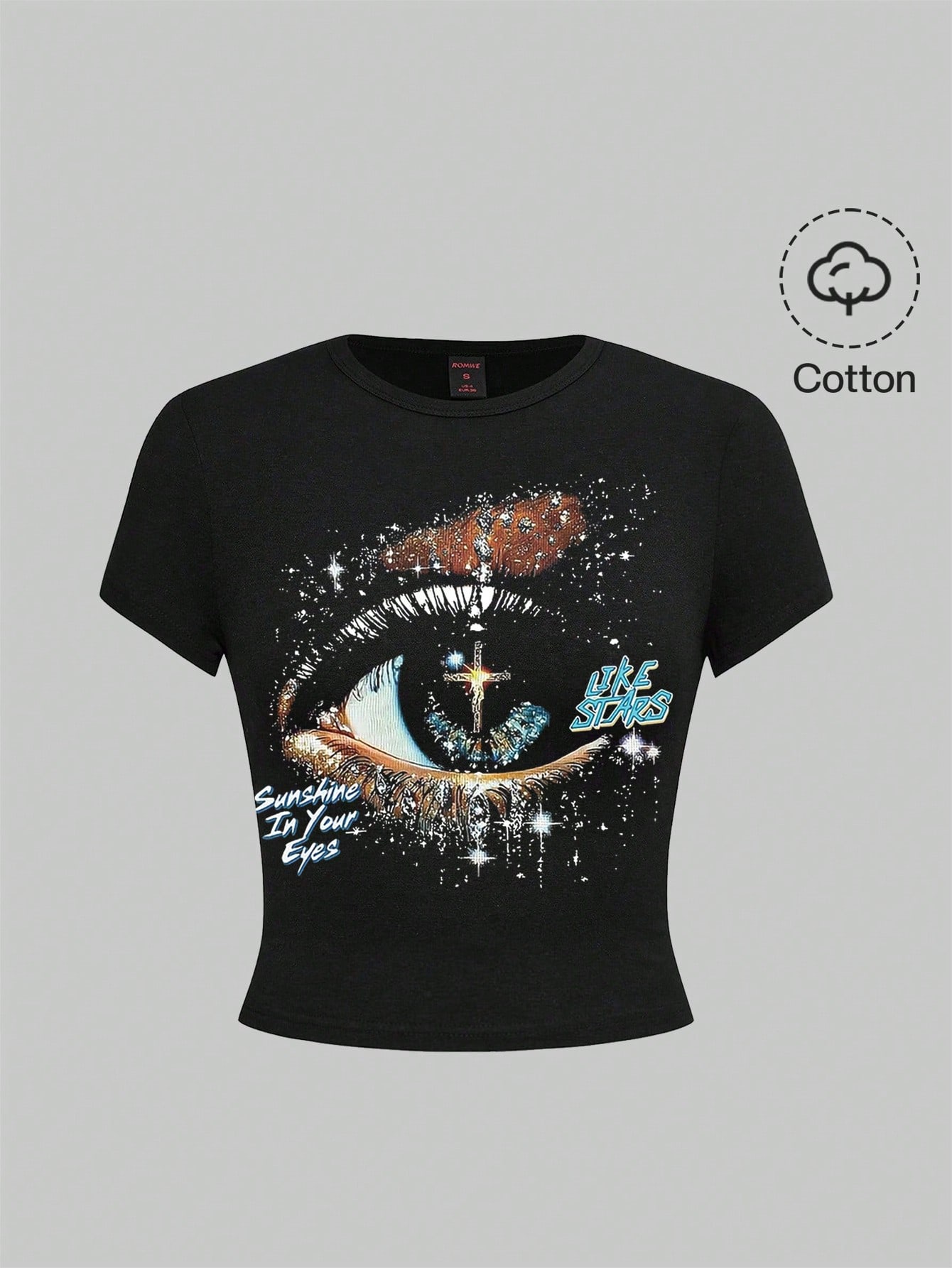 Goth T-shirt casual da donna a maniche corte, con scollo tondo, grafica con lettera e occhio, versatile per uso quotidiano