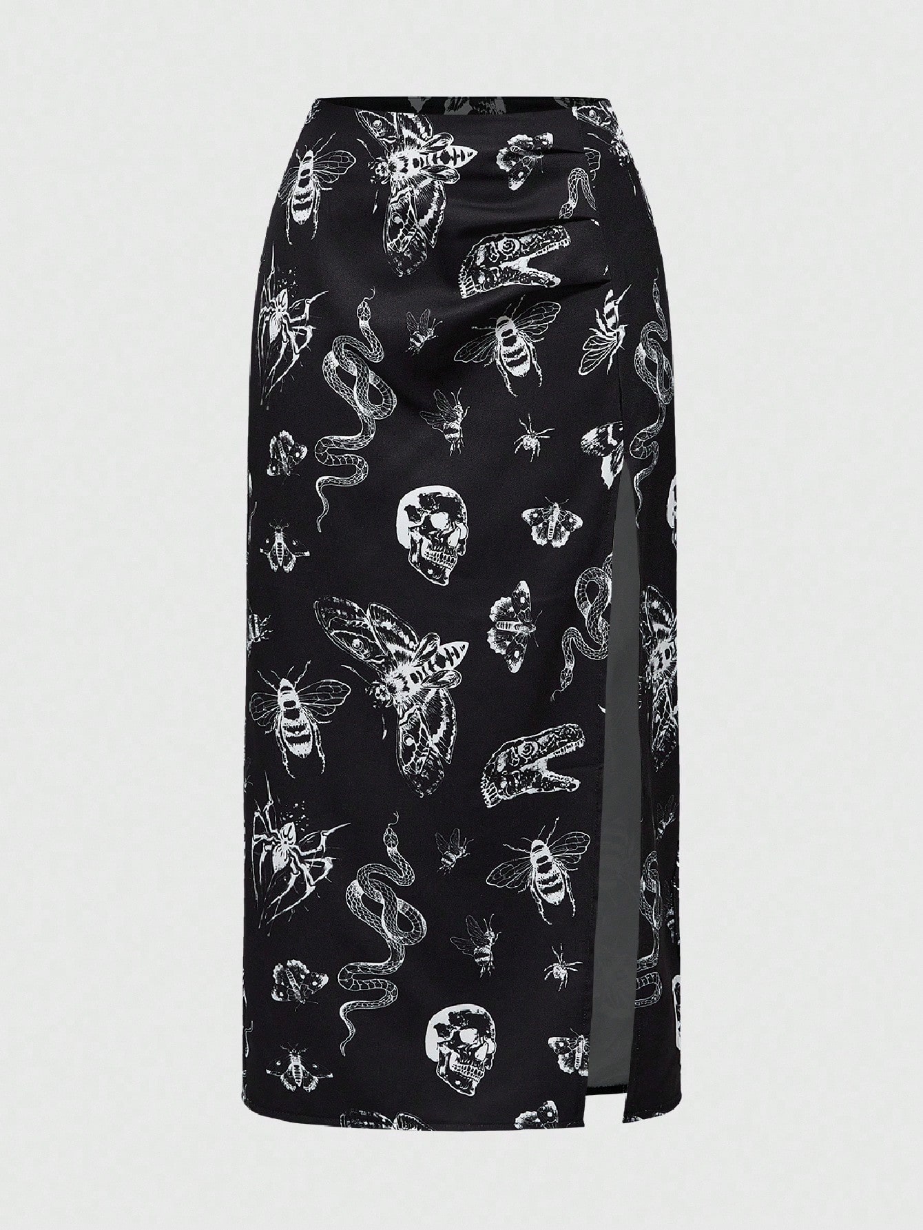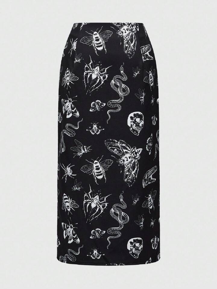 Goth Gonna lunga con spacco alto, stampa di teschi e animali di moda dark e sexy, adatta per Ognissanti