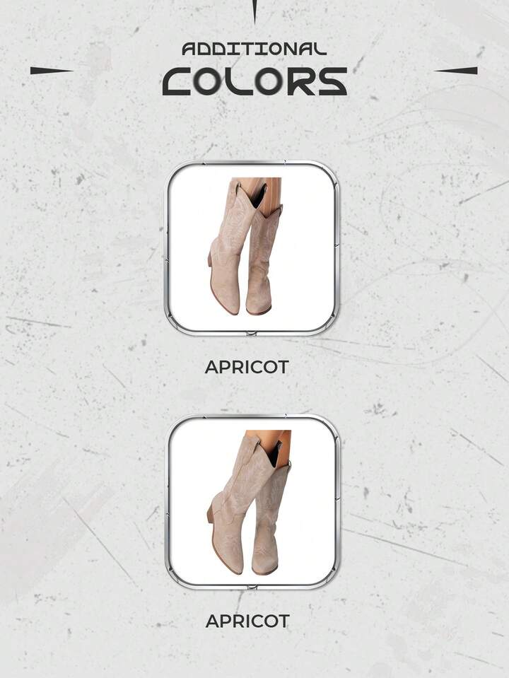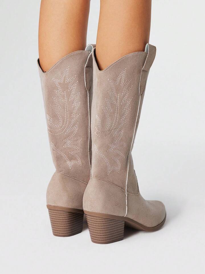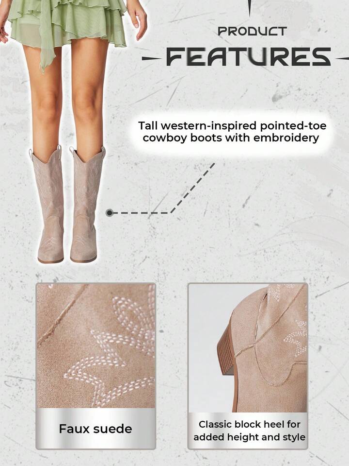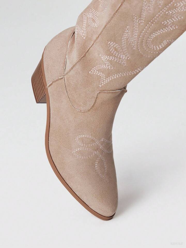 Goth Stivali western da donna con punta affusolata, suola spessa e ricami, beige, per la primavera e l autunno