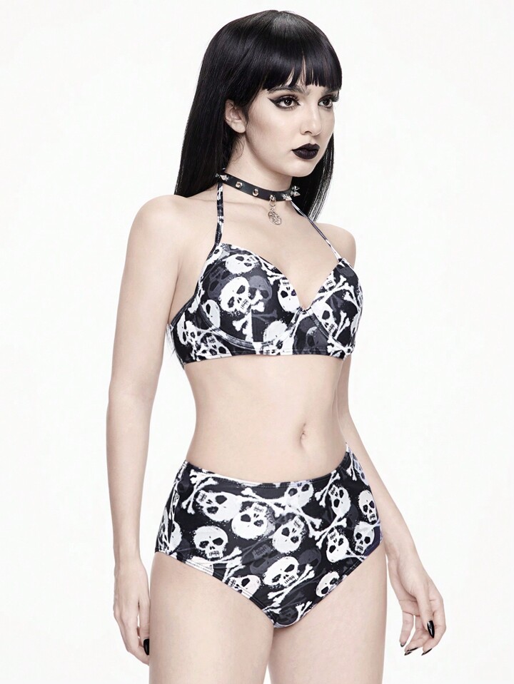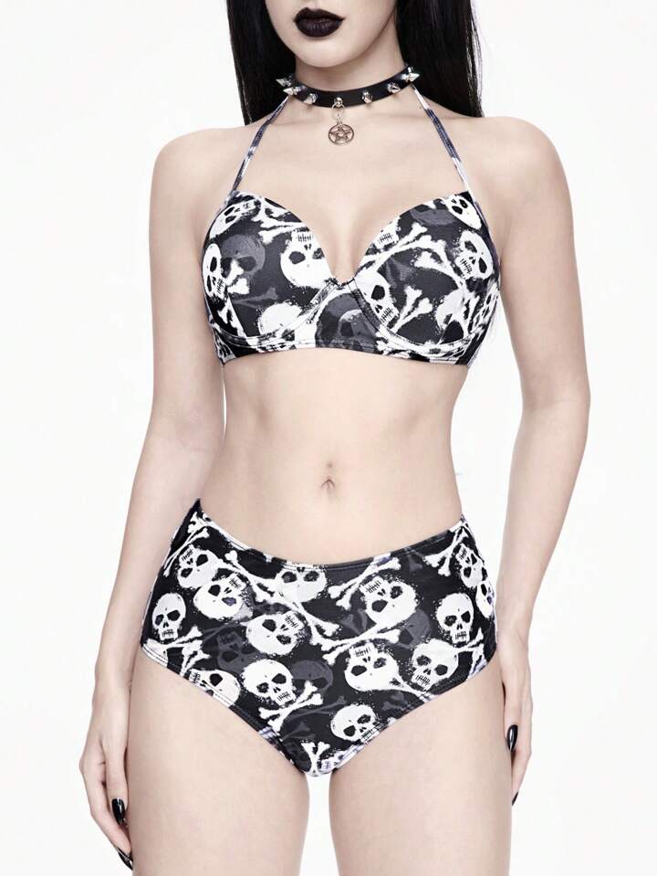 Goth Insieme Bikini Sexy Con Stampa Teschio A Fascia Estiva Per Le Donne Per La Spiaggia