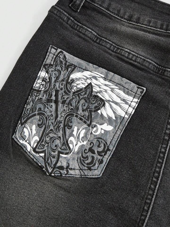 Goth Pantaloncini Di Jeans Tascabili Stampati Con Motivo Ad Ali Da Donna