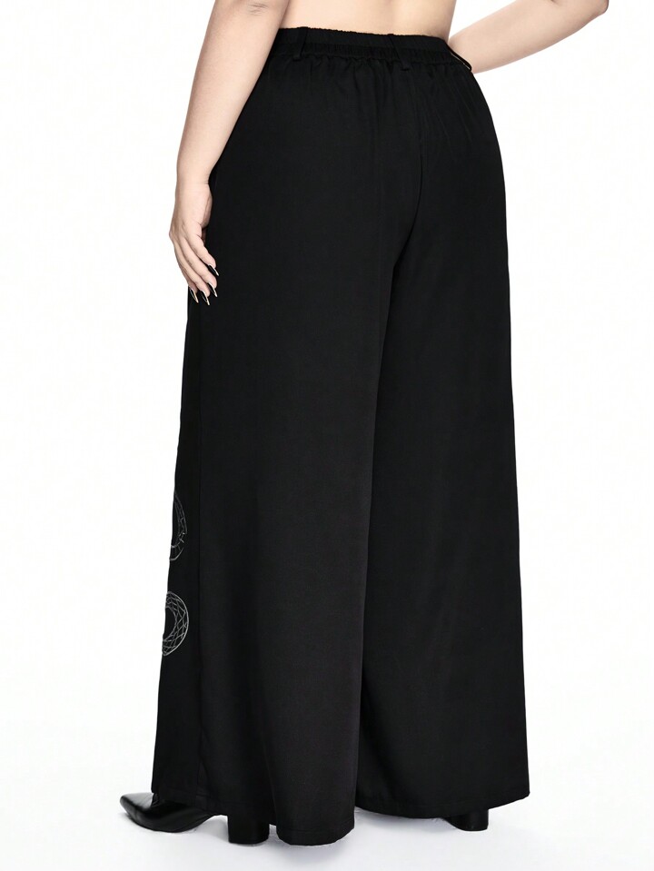 Pantaloni larghi da ufficio casual goth con ricamo di serpente in taglie comode