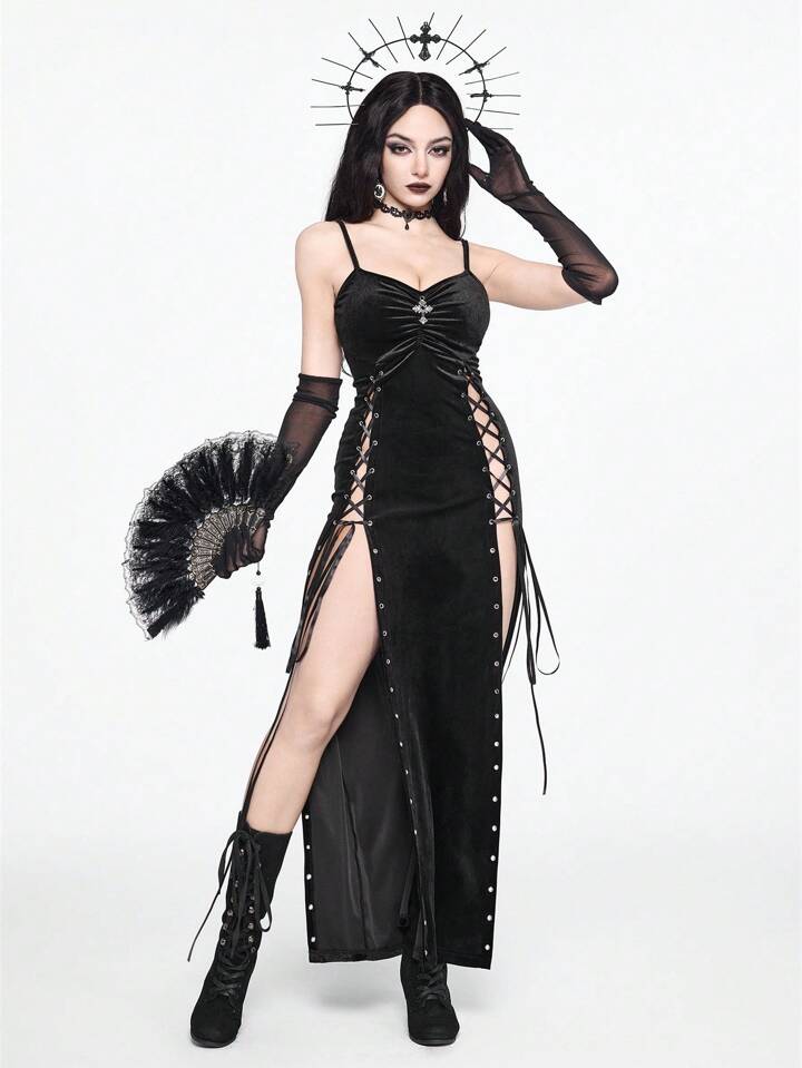 Goth Abito aderente a sottoveste con spacco alto e croce gotica sexy