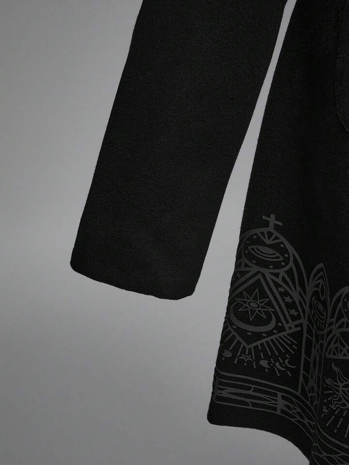 Goth Giacca nera vintage con stampa gotica a tema castello scuro, taglia grande, con colletto in pelliccia, cappuccio e antivento, adatta per l'autunno/inverno e il Natale, giacca da donna taglia comoda
