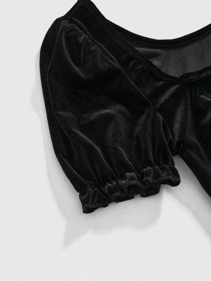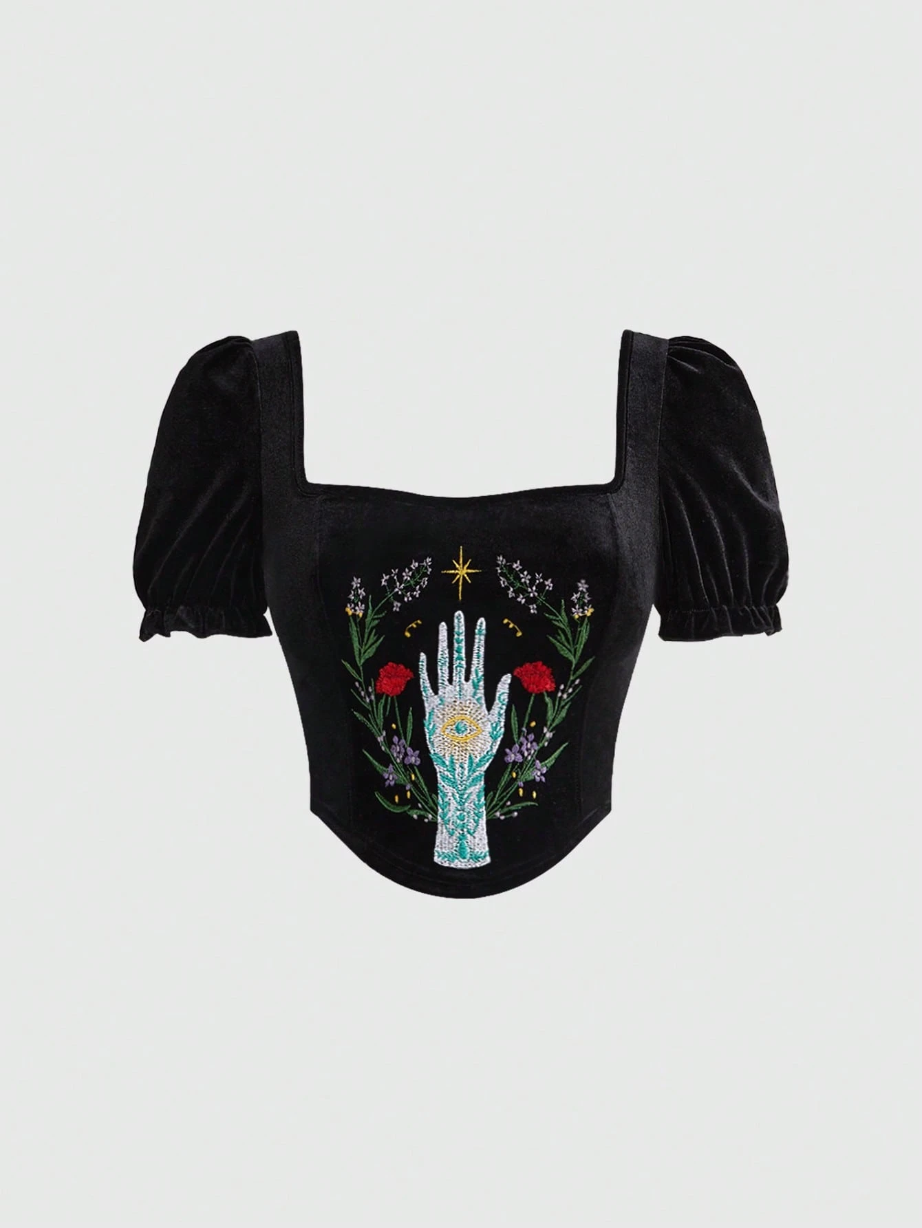 Goth Top in velluto da donna con ricami gotici di mano, stella, luna, fiori, piante e occhi