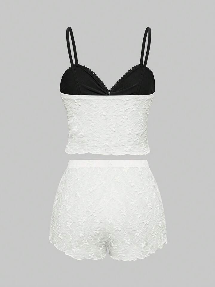 Goth Set pigiama composto da canotta in pizzo jacquard e pantaloncini, stile gotico, in tessuto trasparente