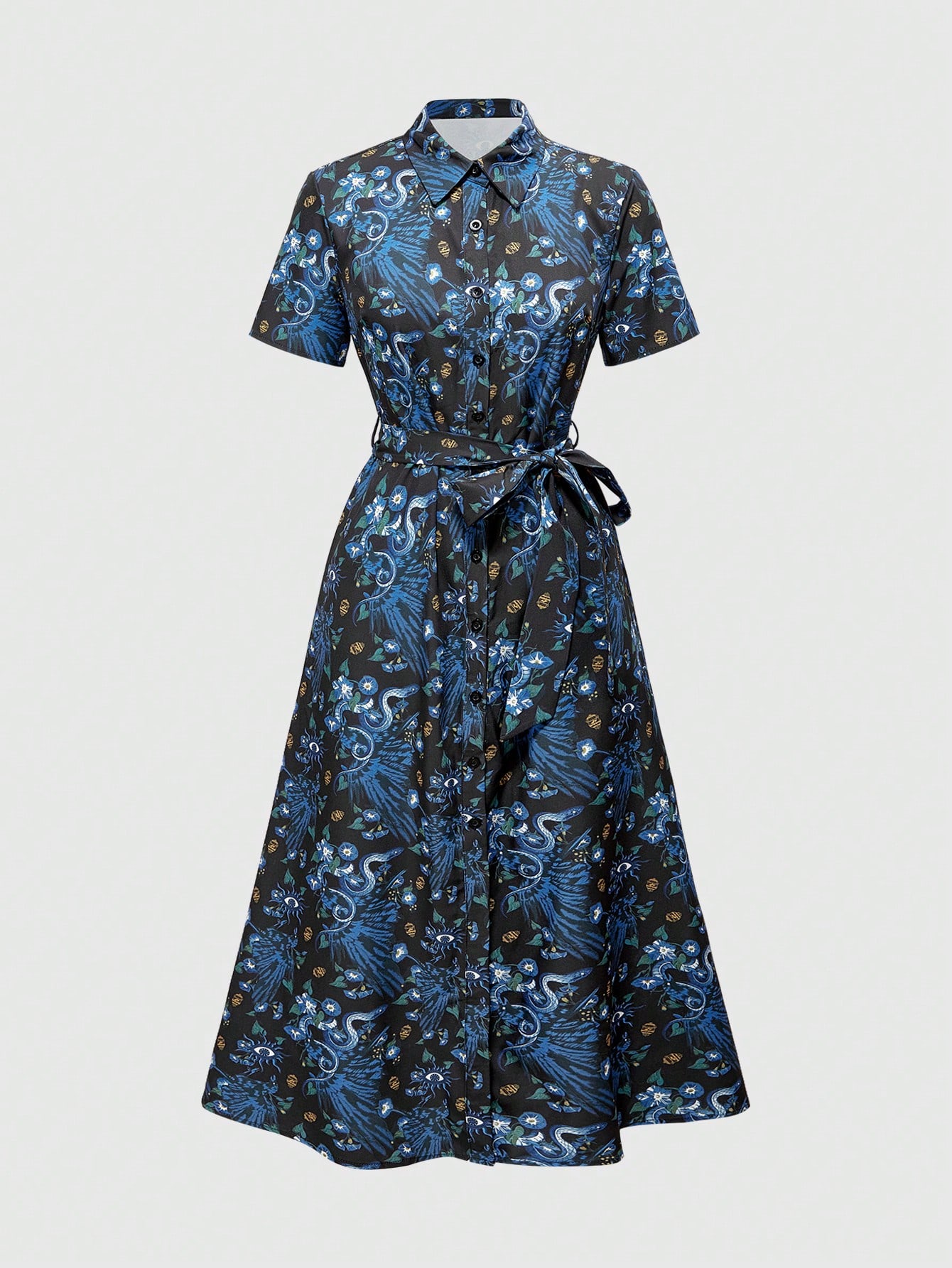 Goth Abito camicetta da donna in stile gotico con stampa floreale e spacco alto a-line