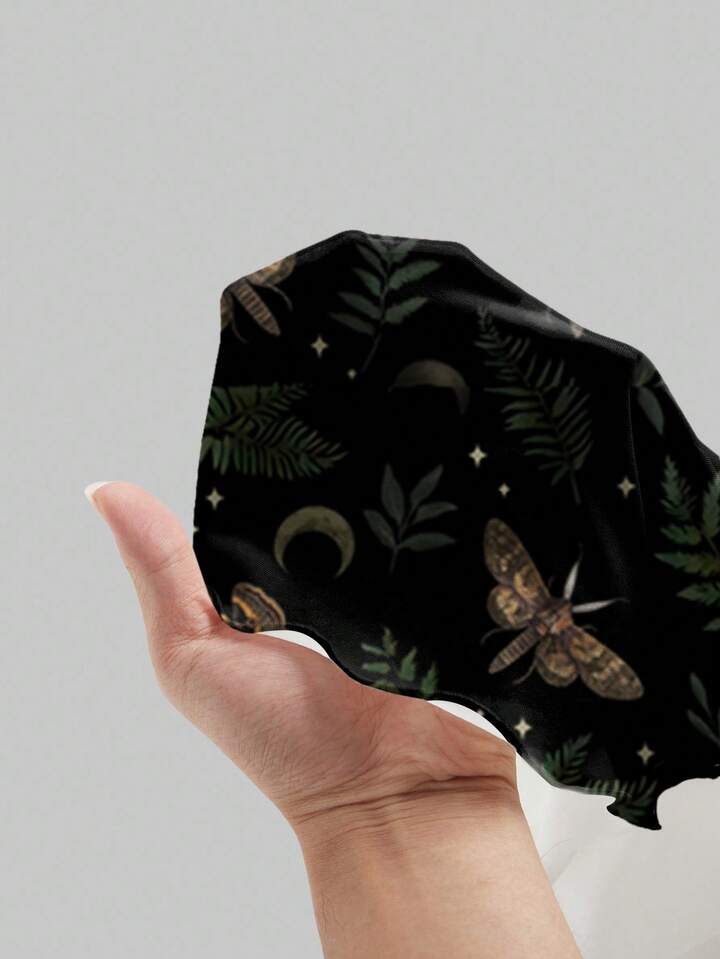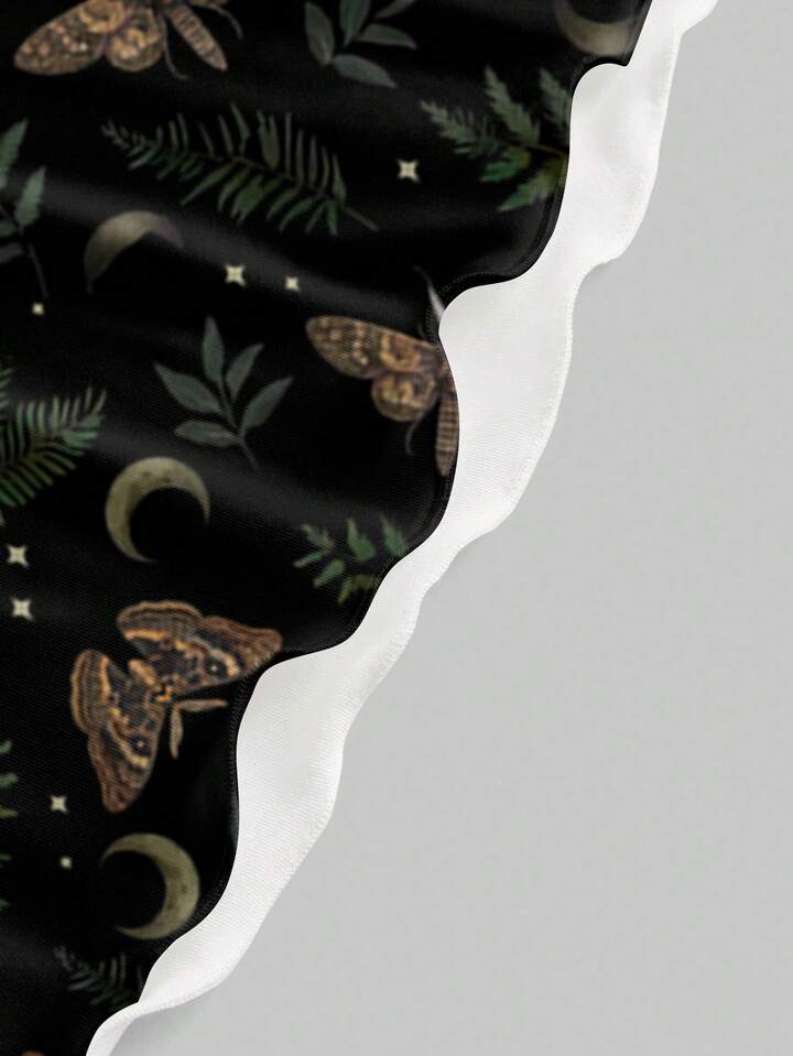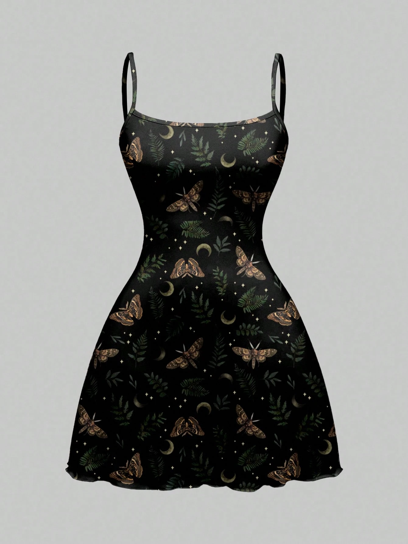 Goth Abito mini con stampa di foglie, sole, luna e stelle, in stile gotico, colore verde e nero