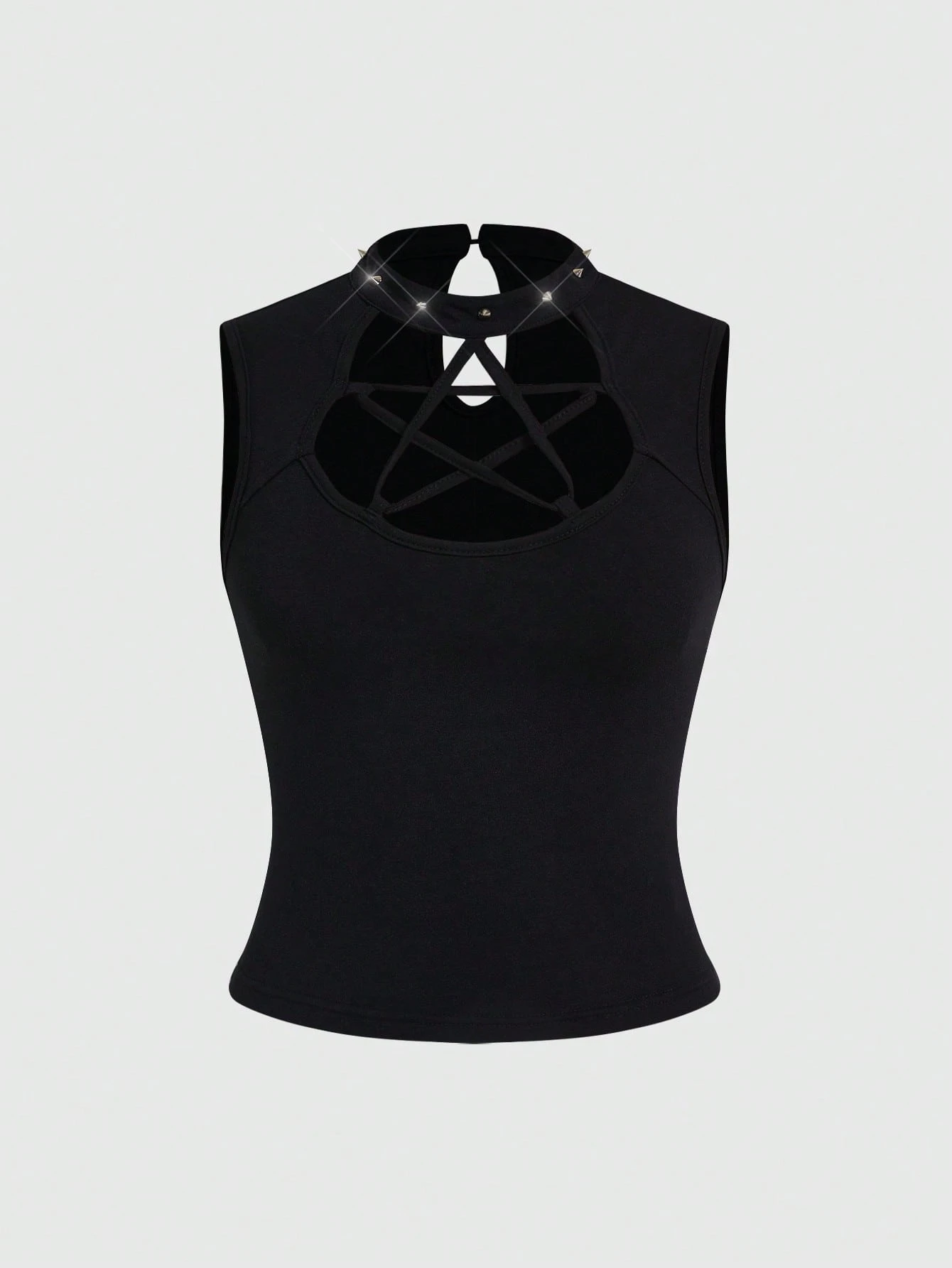 Goth Top corto senza maniche con lacci e stella a cinque punte traforata, stile gotico, per donna
