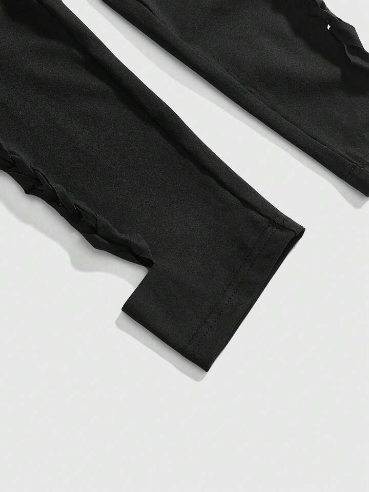 Goth Leggings elastici lavorati a maglia con motivo traforato, stile gotico, per donne