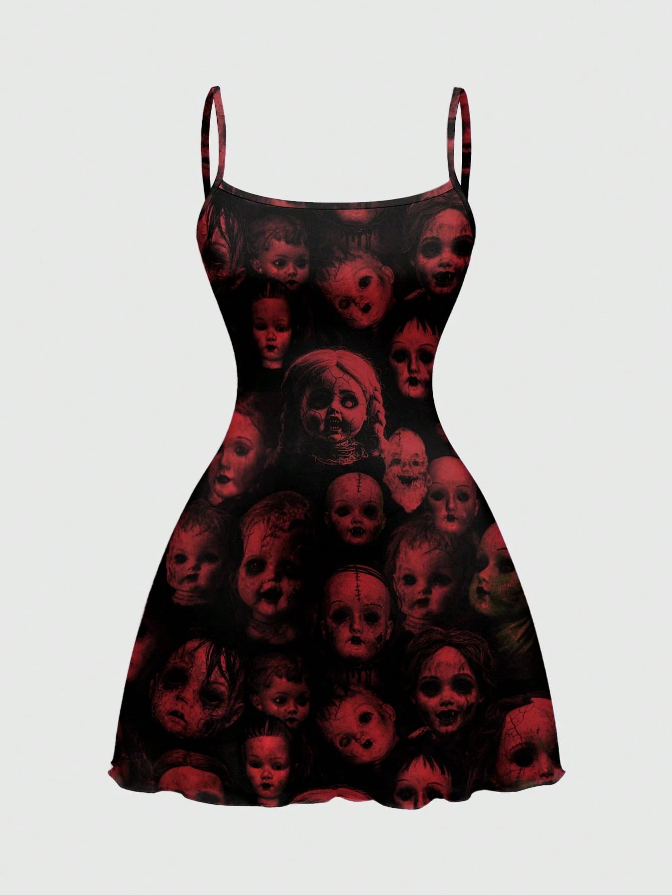 Goth Abito sottoveste mini sexy con stampa di bambole gotiche misteriose e oscure per le donne