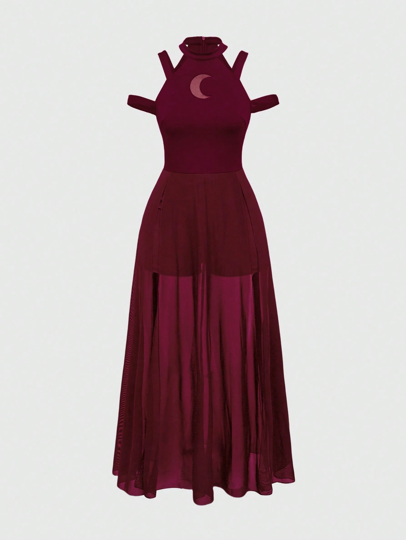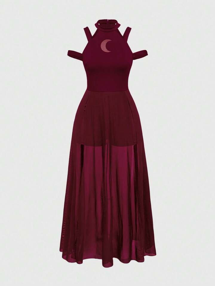 Goth Abito estivo da spiaggia e vacanza, stile gotico, con spalle scoperte, fessura e inserti in rete a forma di luna