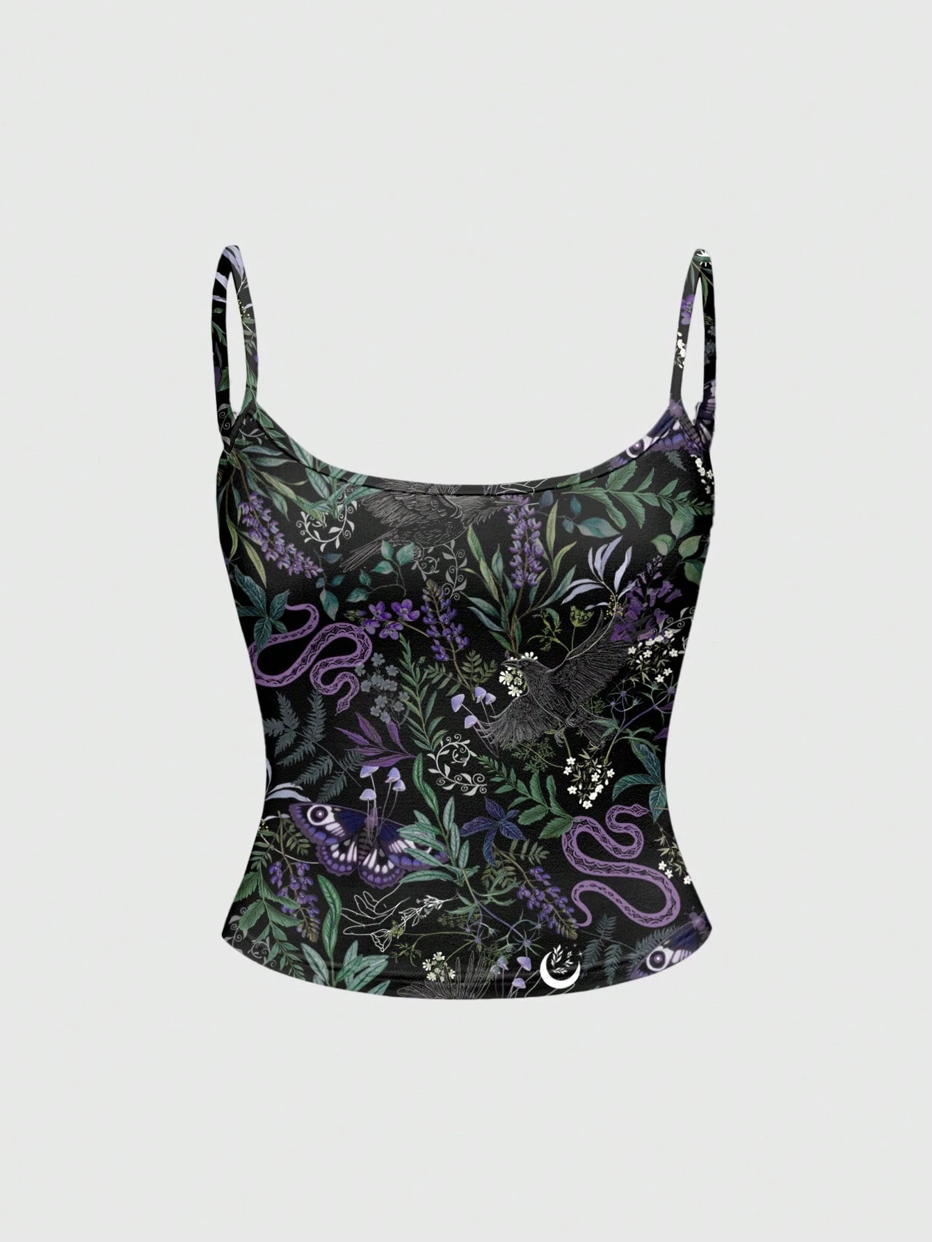 Goth Canotta da donna con stampa gotica misteriosa di aquila e botanica