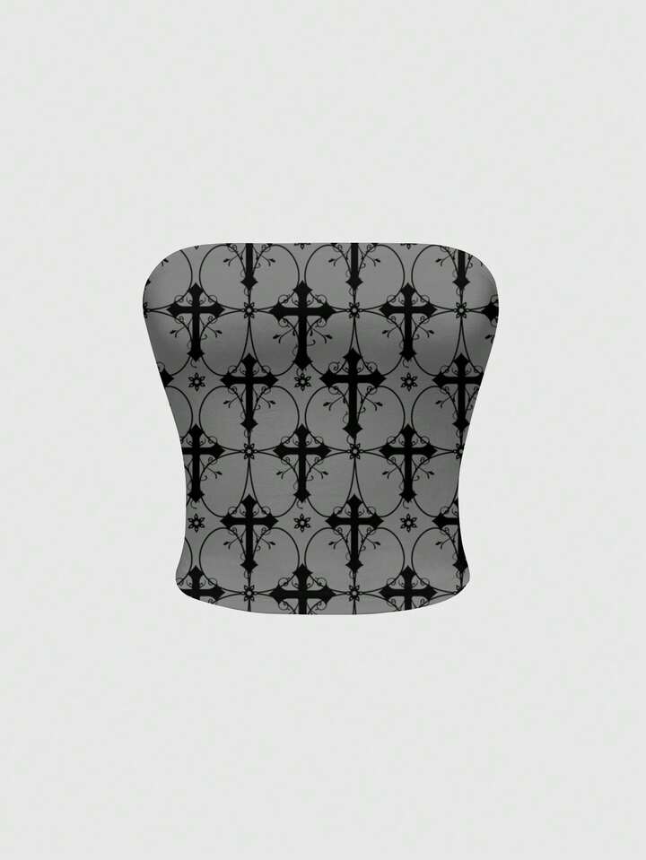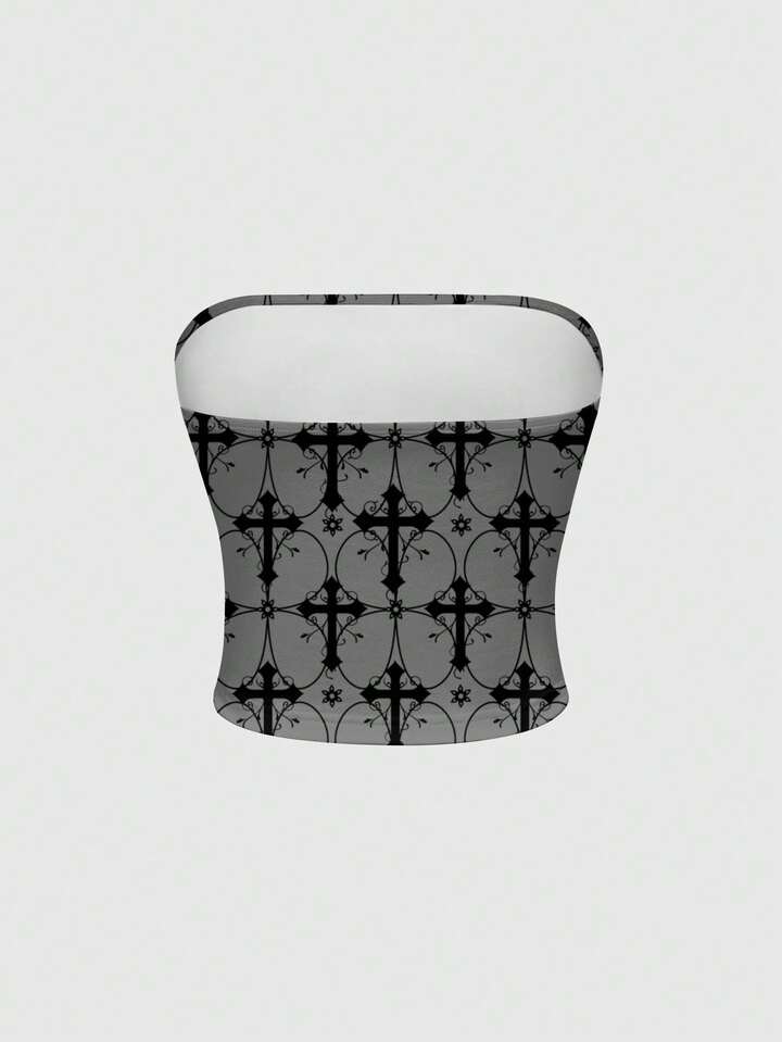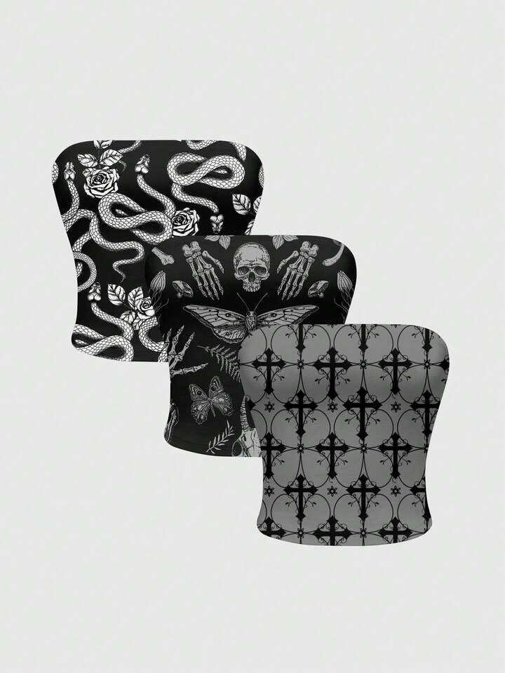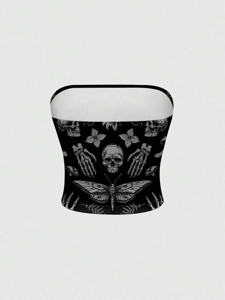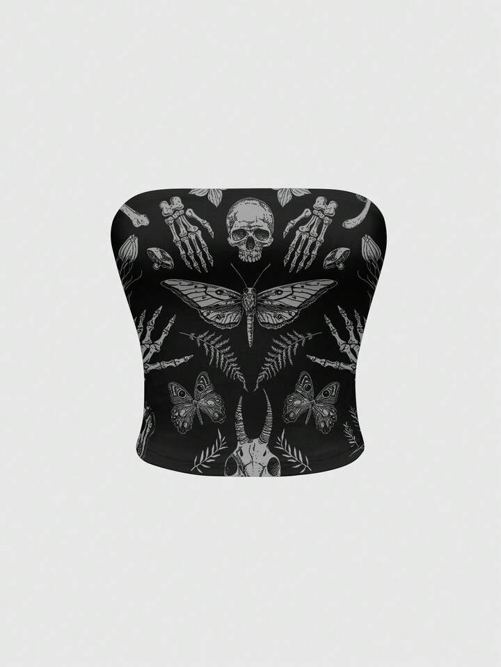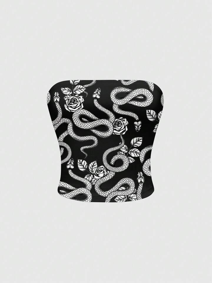 Goth Crop top gotico e misterioso con motivo floreale, serpente, rosa della foresta, per il giorno di San Valentino, sexy, con incrocio e collo alto, per donne