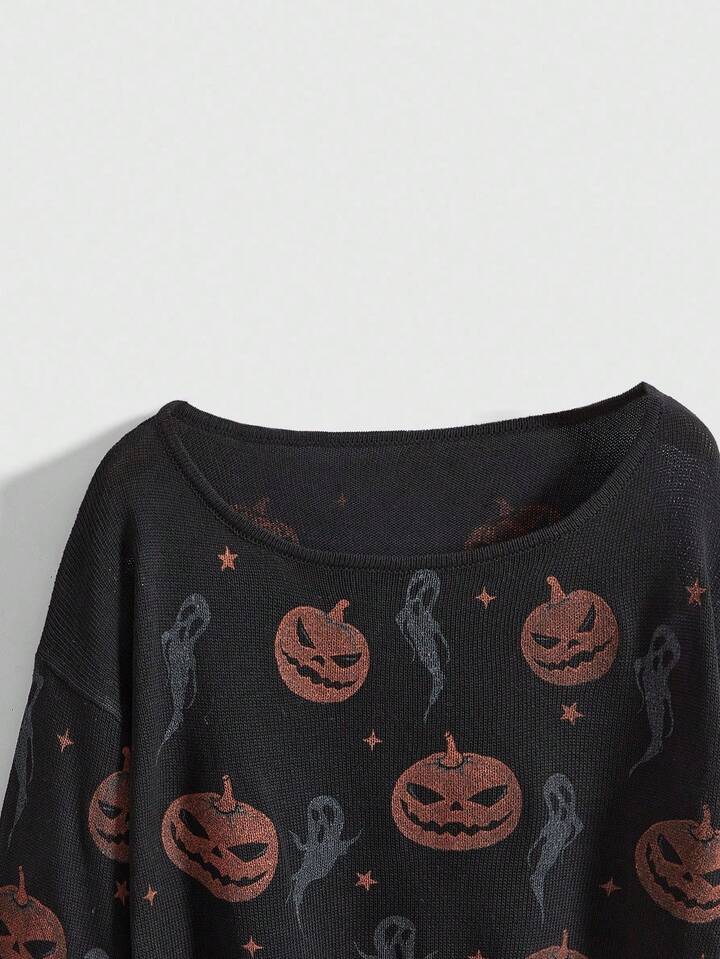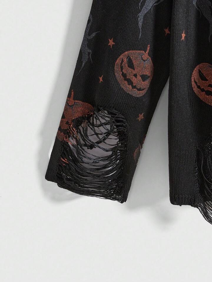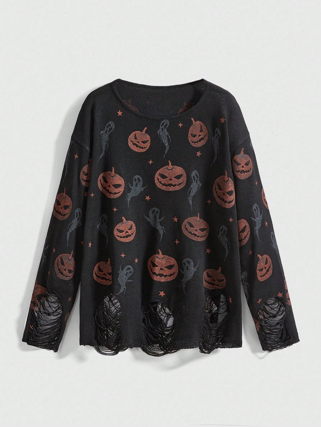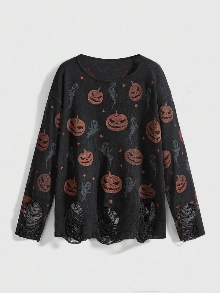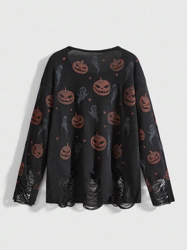Goth Maglione lavorato a maglia con strappi a tema zucca e fantasma gotico, per Ognissanti