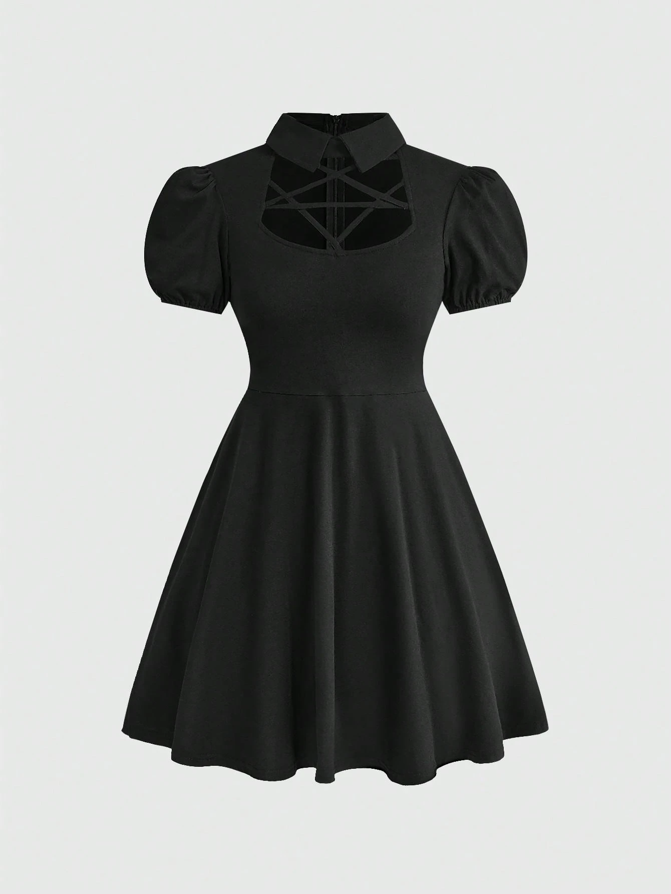 Goth Abito corto da donna in stile gotico retrò con maniche a palloncino e bretelle a forma di stella a cinque punte